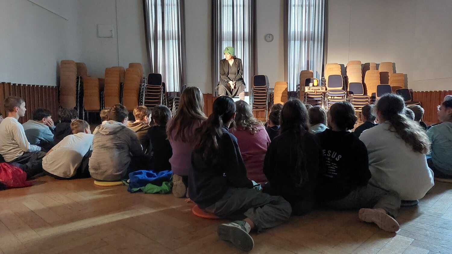 Am 31.10.24 fanden drei Vorstellungen des Theaterstücks „Die Kraft des Erzählens – Der Meisterdieb“ für die 5. und 6. Klassen in unserer Schule statt. Das Theater Hintenlinks aus Krefeld präsentierte diese Aufführung. Gespannt verfolgten die Schülerinnen und Schüler die eindringliche Solo-Darbietung der Schauspielerin Anuschka Gutowski.