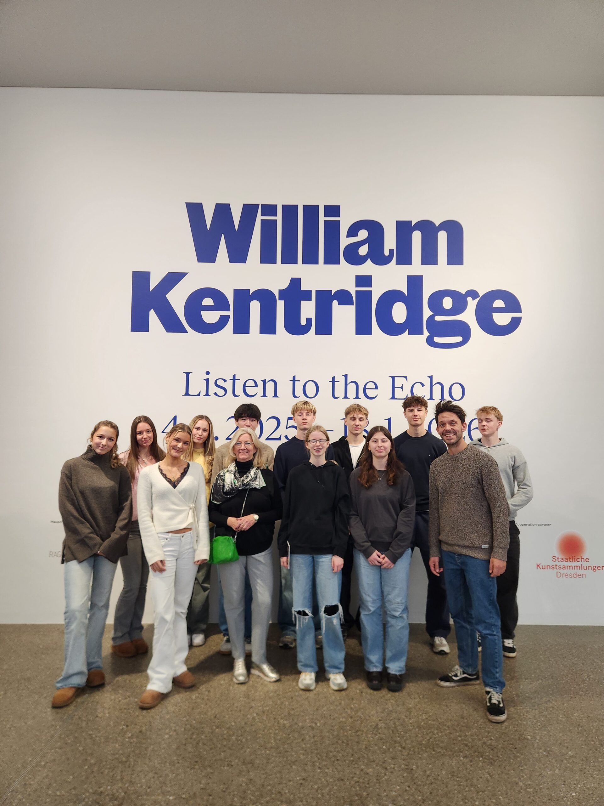 Nach einer intensiven Unterrichtsreihe zu William Kentridge – einem der bedeutendsten zeitgenössischen Künstler und zudem Zentralabiturkünstler – hatte der Kunst-Grundkurs der Q1 am 18.11.25 die besondere Gelegenheit, seine Werke im Rahmen der Ausstellung “Listen to the Echo” im Museum Folkwang in Essen unmittelbar zu erleben.