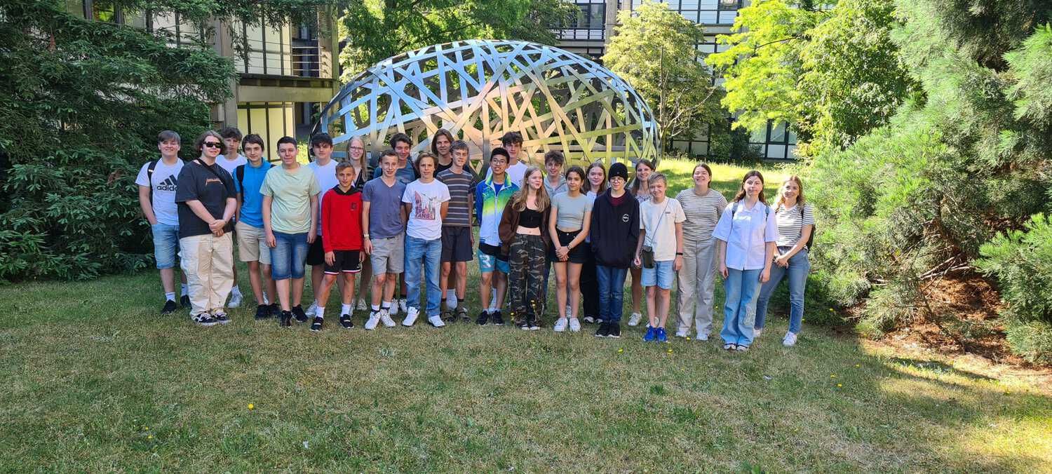 Erstmalig fand in diesem Jahr am 14.06.2023 eine Tagesexkursion an die Heinrich-Heine-Universität Düsseldorf für Schülerinnen und Schüler mit sehr guten Leistungen im Fach Mathematik statt. Begleitet von Herrn Jagenburg, Frau Rönchen und Frau Klumpen machten sich die 28 Heranwachsende aus den Klassen 7 bis Q1 bei bestem Wetter mit der Bahn auf den Weg nach Düsseldorf, um dort neben interessanten Vorlesungen zum Alltag eines Mathematikers Näheres zum Mathematikstudium zu erfahren und auch selbst die mathematischen Hintergründe von Sudokus und dem Spiel SET zu erkunden.