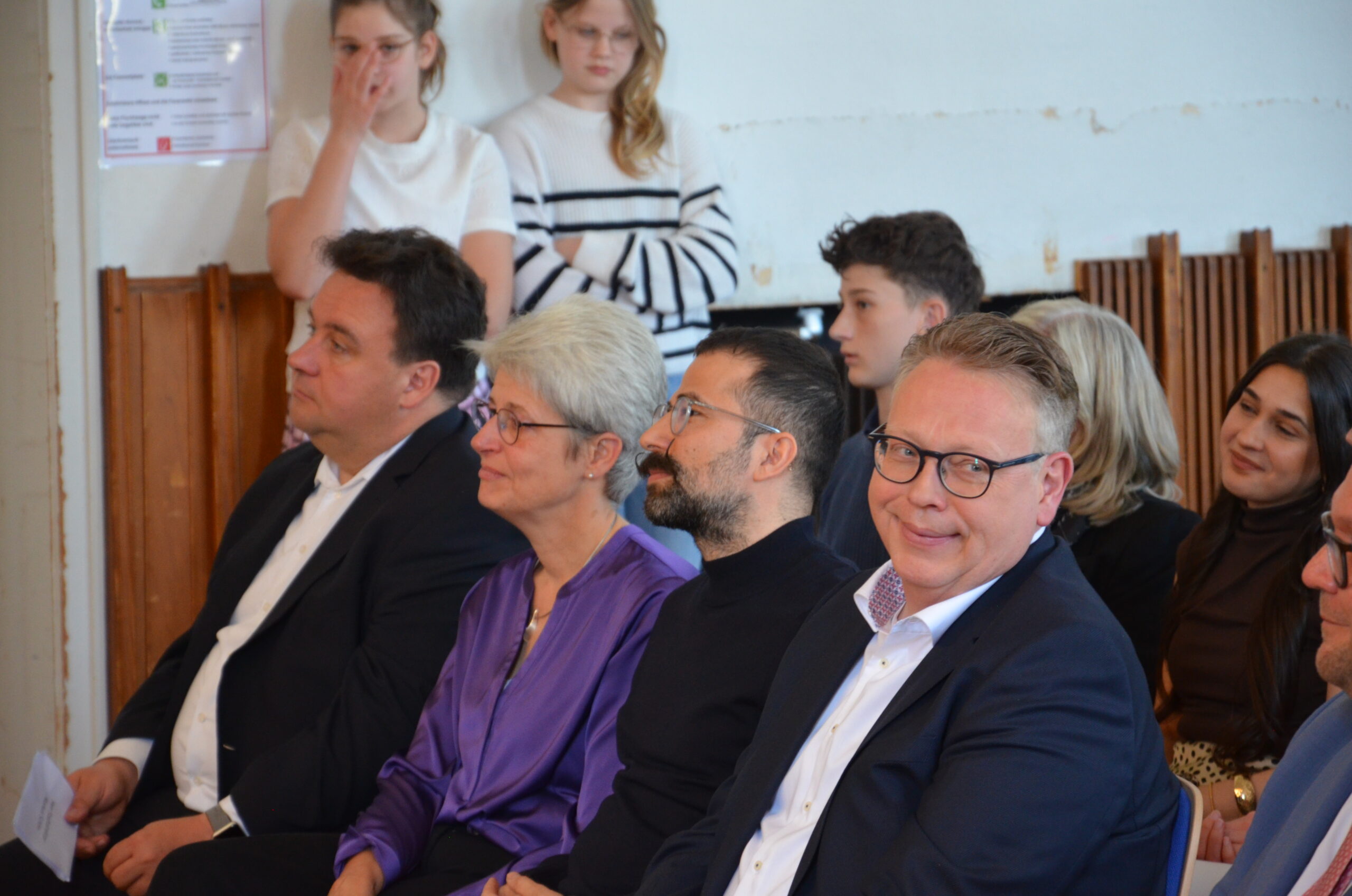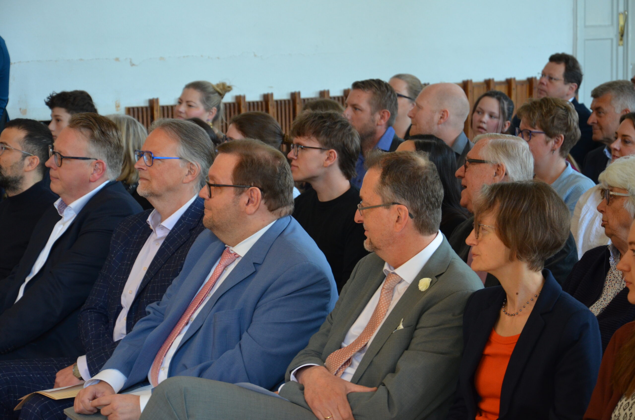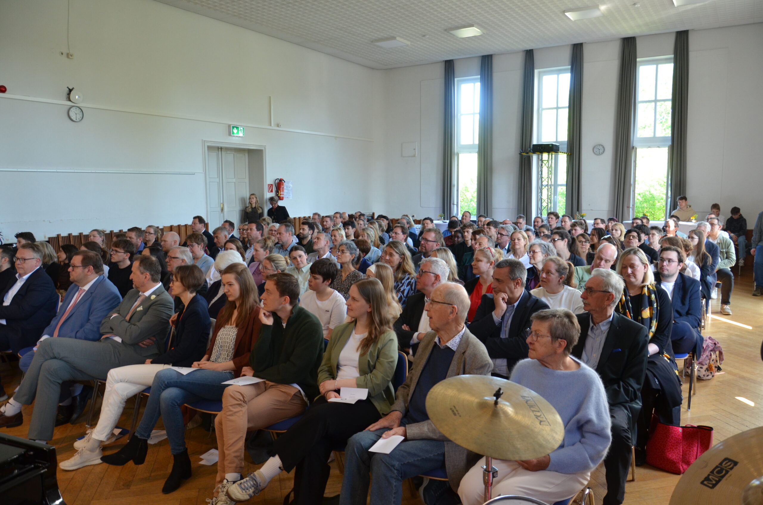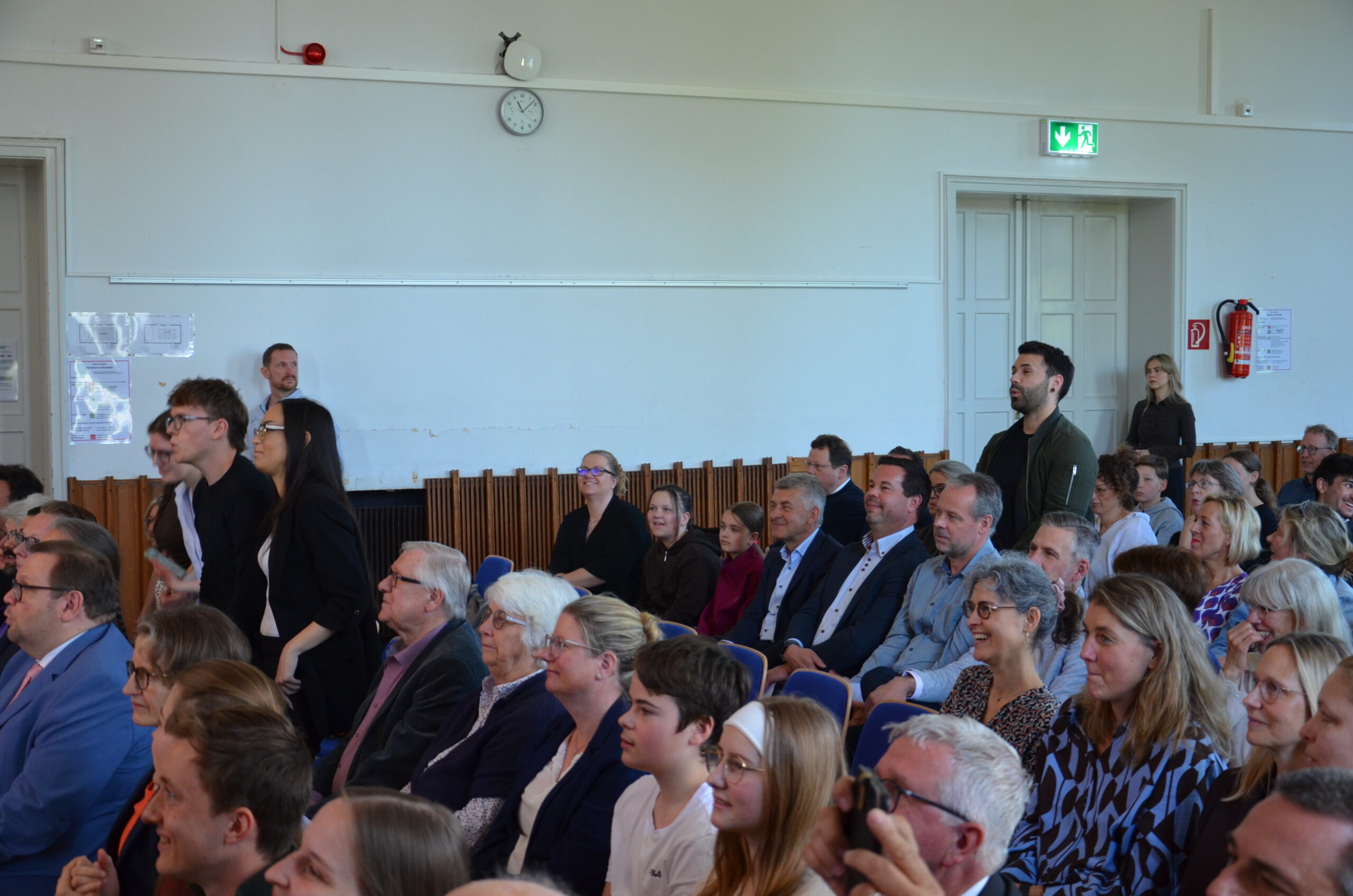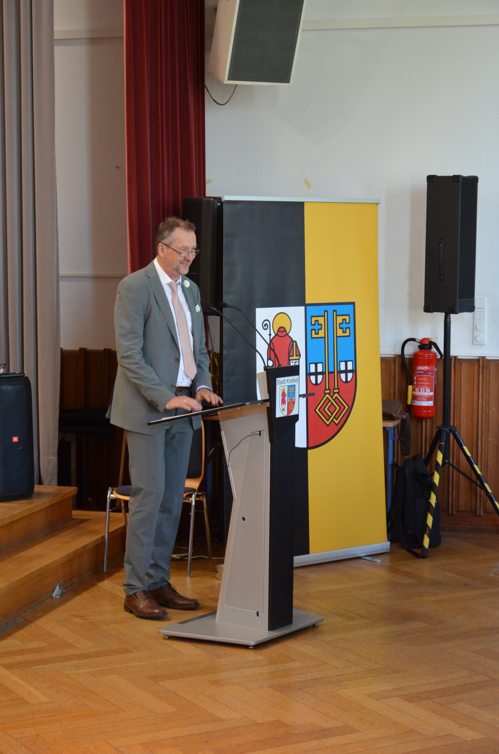 Oberbürgermeister Frank Meyer, Schuldezernent Stefan Holtschneider, Landtagsabgeordneter Marc Blondin, um nur einige zu nennen: Viel Prominenz war zur offiziellen und feierlichen Amtseinführung von Stefan Kleeberg vertreten. Zusammen mit der Familie des neuen Schulleiters, den Kolleginnen und Kollegen, Vertreterinnen und Vertretern aus der Schülerschaft, der Elternschaft und vielen weiteren Weggefährtinnen und -gefährten wurde dieses Ereignis in der prall gefüllten Aula gebührend begangen und gefeiert. Das nicht nur in verschiedenen Reden, wie z.B. durch den Oberbürgermeister und ehemaligen Schüler des Gymnasiums in Personalunion, sondern auch mit musikalischen Beiträgen oder einem heiteren Abschluss-Quiz, das Stefan Kleeberg mit Bravour bestand.