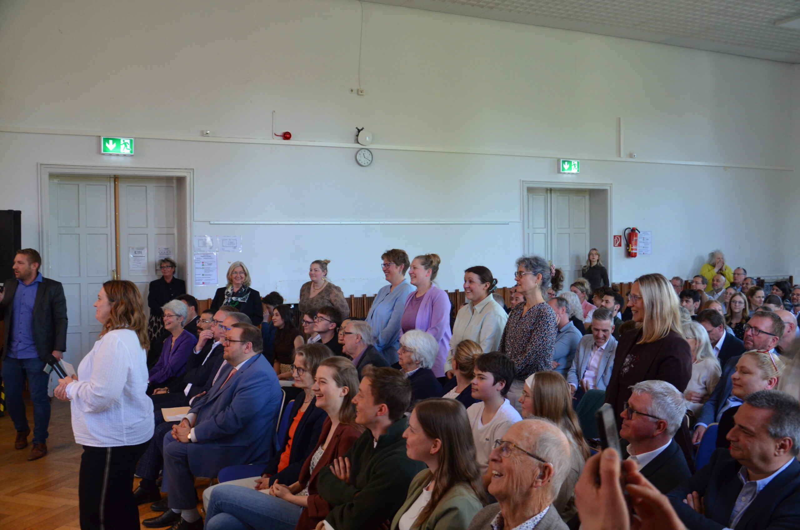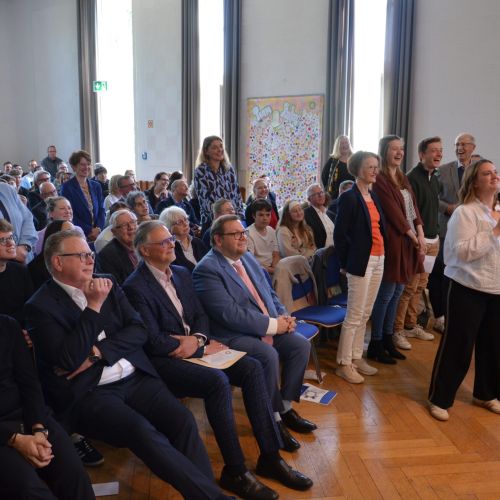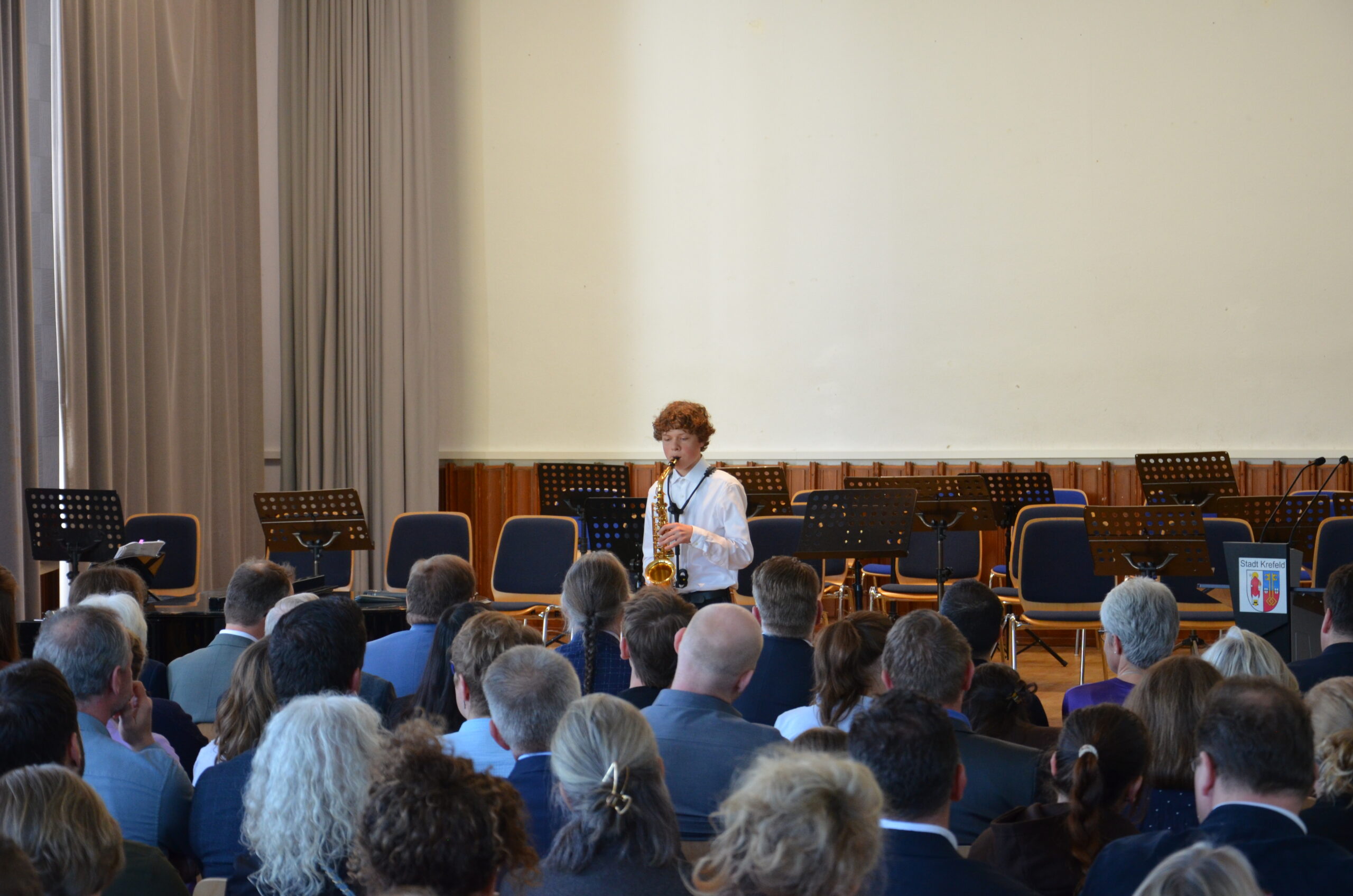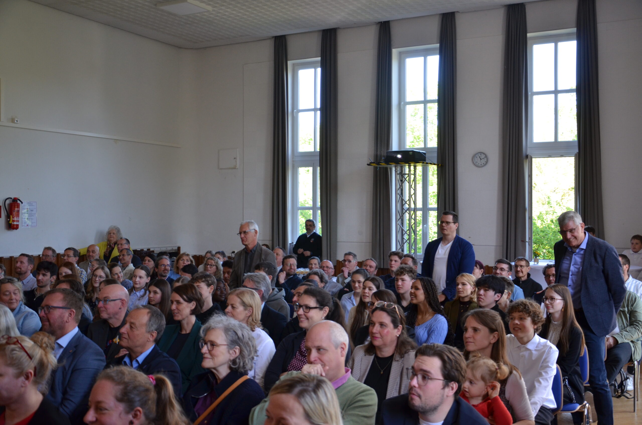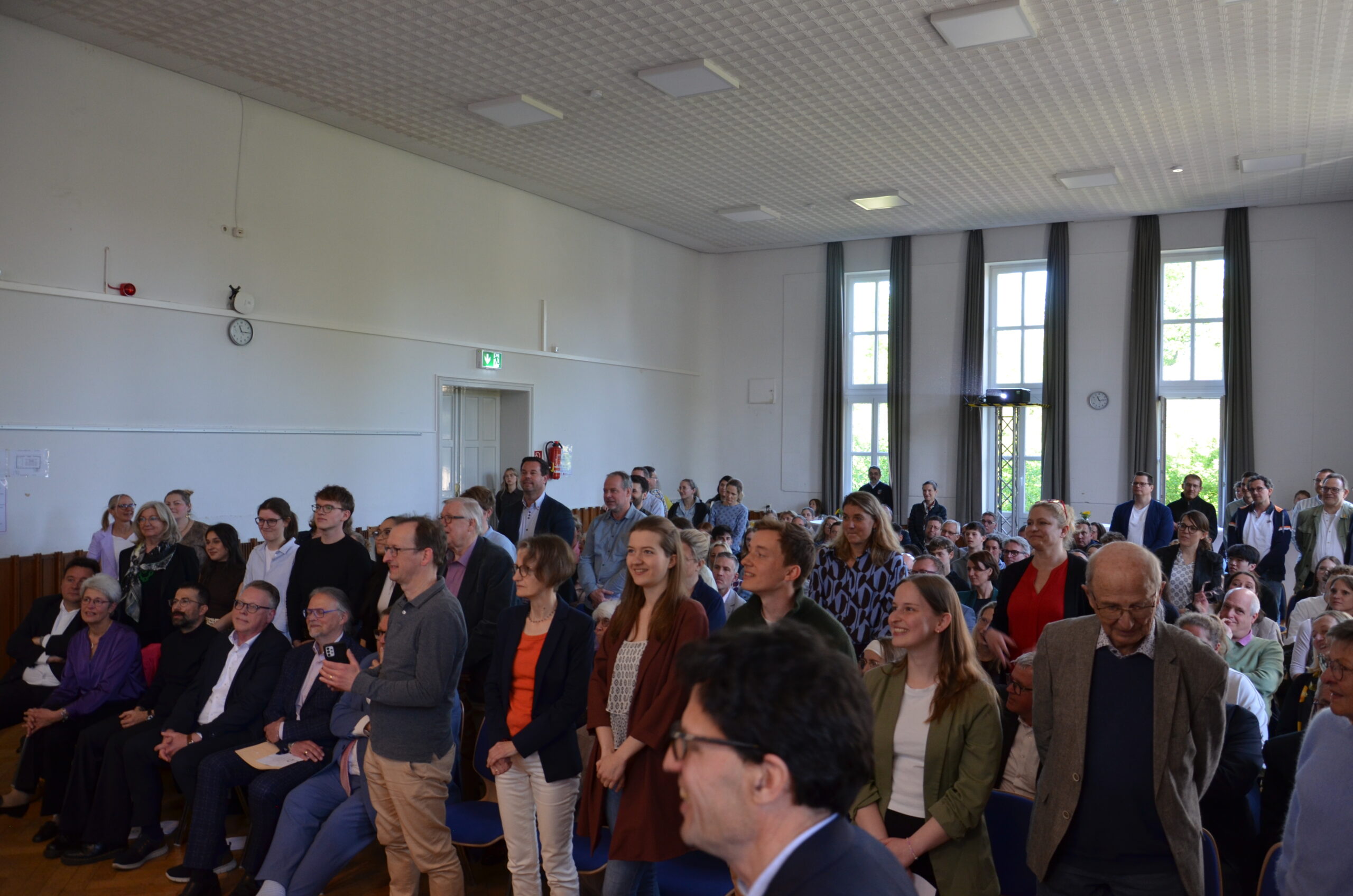 Oberbürgermeister Frank Meyer, Schuldezernent Stefan Holtschneider, Landtagsabgeordneter Marc Blondin, um nur einige zu nennen: Viel Prominenz war zur offiziellen und feierlichen Amtseinführung von Stefan Kleeberg vertreten. Zusammen mit der Familie des neuen Schulleiters, den Kolleginnen und Kollegen, Vertreterinnen und Vertretern aus der Schülerschaft, der Elternschaft und vielen weiteren Weggefährtinnen und -gefährten wurde dieses Ereignis in der prall gefüllten Aula gebührend begangen und gefeiert. Das nicht nur in verschiedenen Reden, wie z.B. durch den Oberbürgermeister und ehemaligen Schüler des Gymnasiums in Personalunion, sondern auch mit musikalischen Beiträgen oder einem heiteren Abschluss-Quiz, das Stefan Kleeberg mit Bravour bestand.