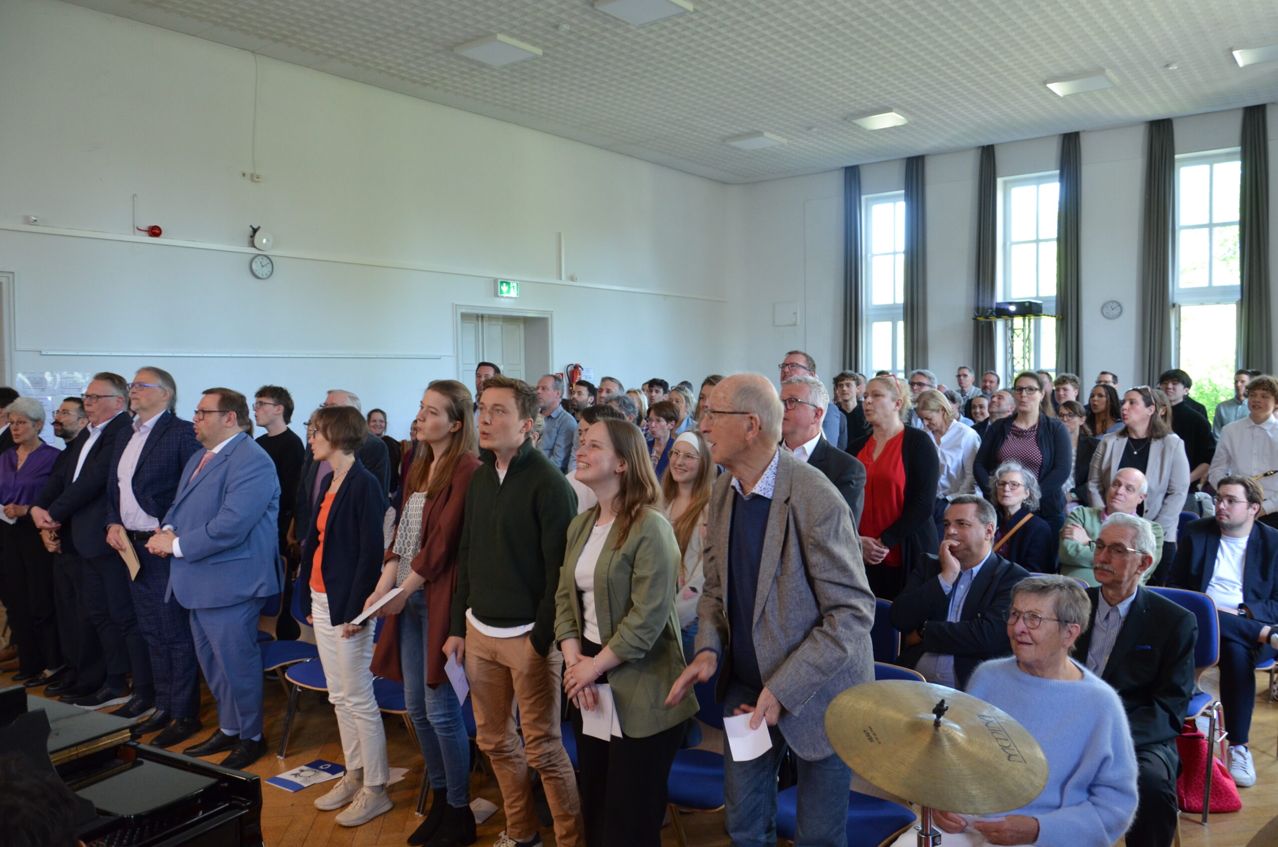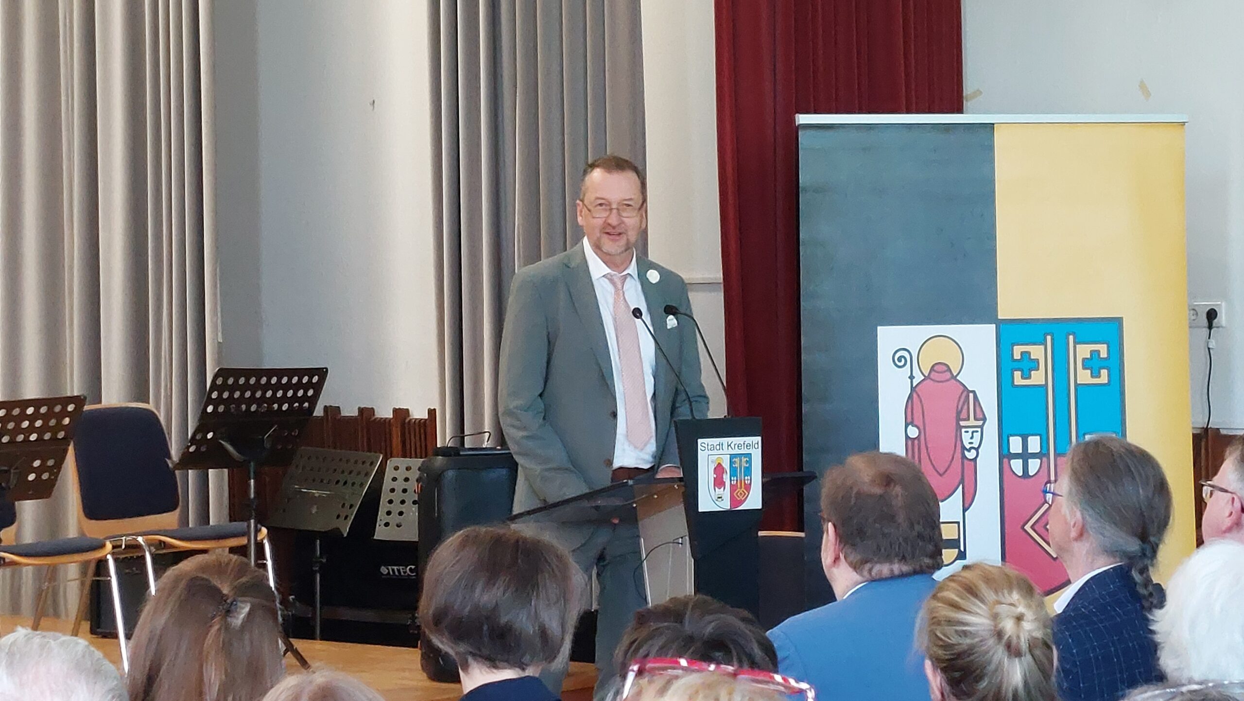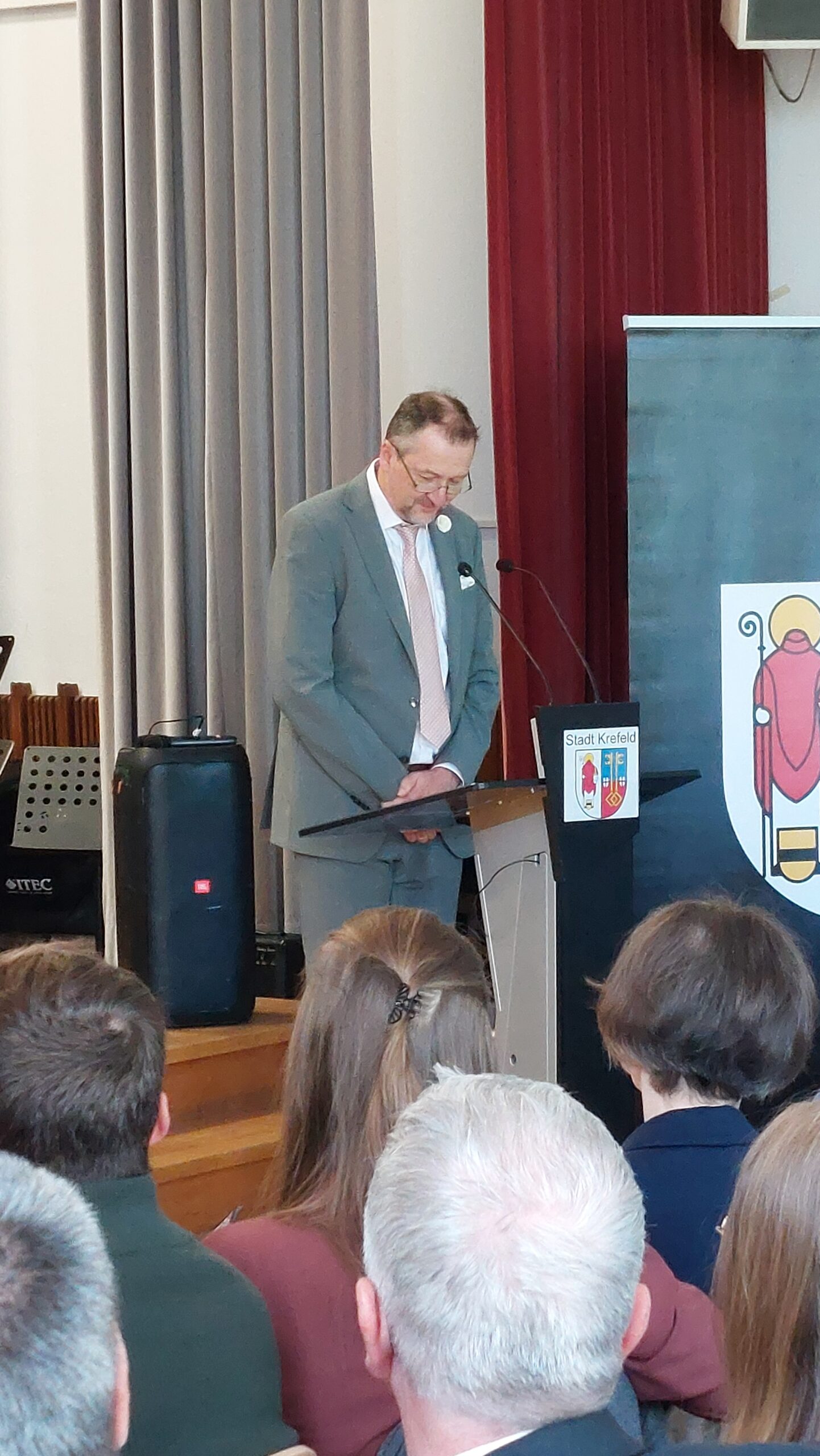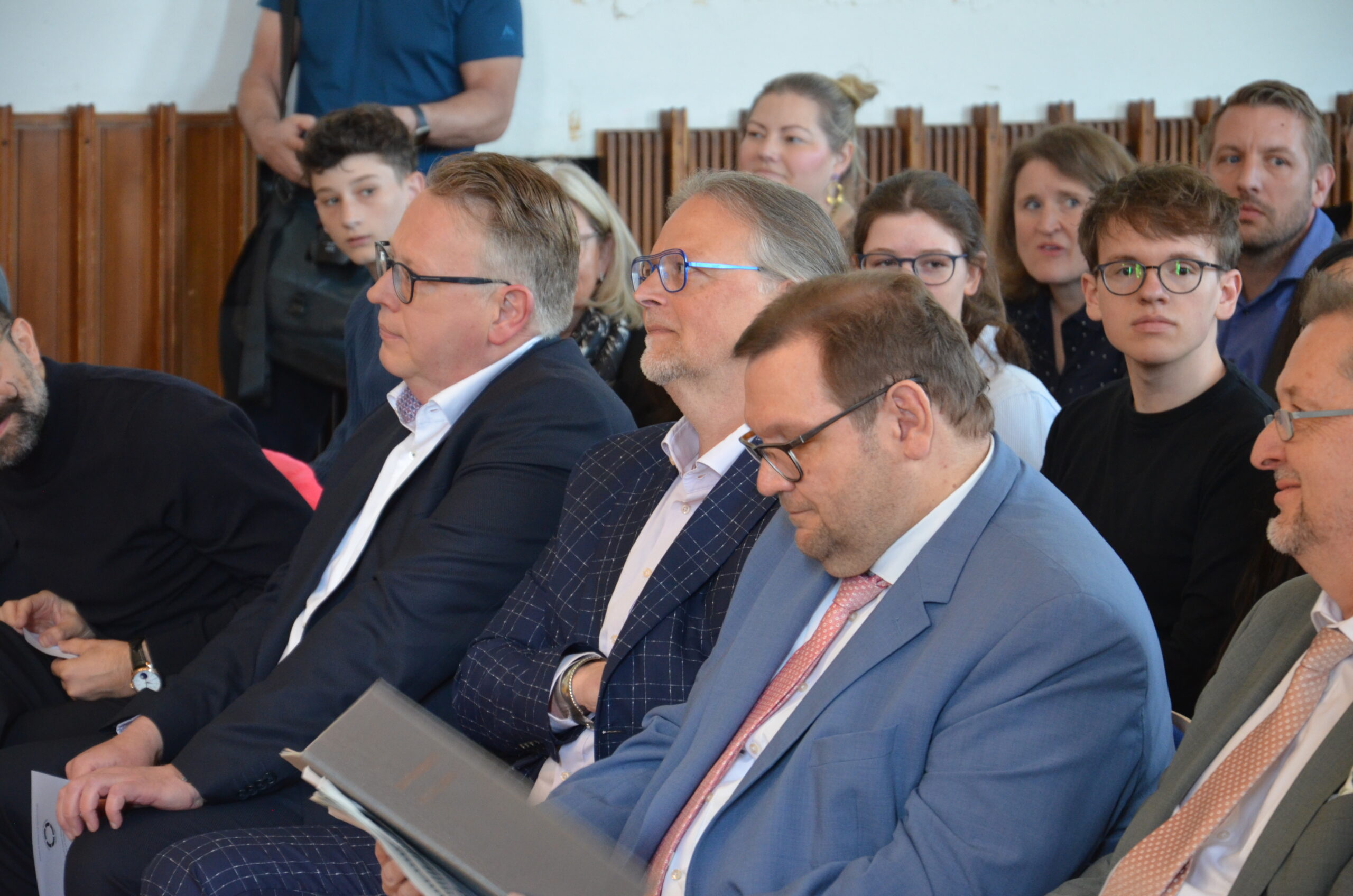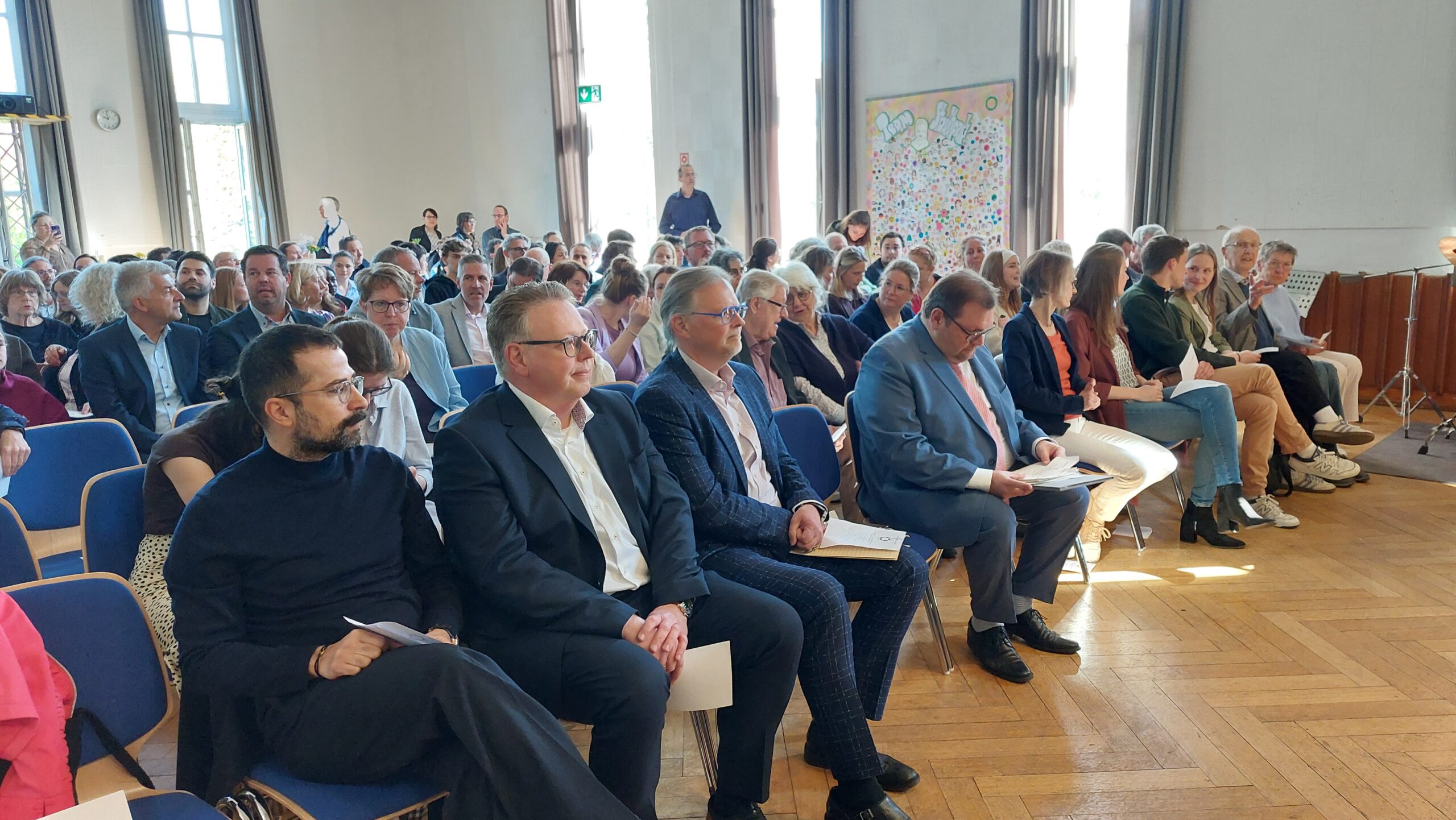 Oberbürgermeister Frank Meyer, Schuldezernent Stefan Holtschneider, Landtagsabgeordneter Marc Blondin, um nur einige zu nennen: Viel Prominenz war zur offiziellen und feierlichen Amtseinführung von Stefan Kleeberg vertreten. Zusammen mit der Familie des neuen Schulleiters, den Kolleginnen und Kollegen, Vertreterinnen und Vertretern aus der Schülerschaft, der Elternschaft und vielen weiteren Weggefährtinnen und -gefährten wurde dieses Ereignis in der prall gefüllten Aula gebührend begangen und gefeiert. Das nicht nur in verschiedenen Reden, wie z.B. durch den Oberbürgermeister und ehemaligen Schüler des Gymnasiums in Personalunion, sondern auch mit musikalischen Beiträgen oder einem heiteren Abschluss-Quiz, das Stefan Kleeberg mit Bravour bestand.