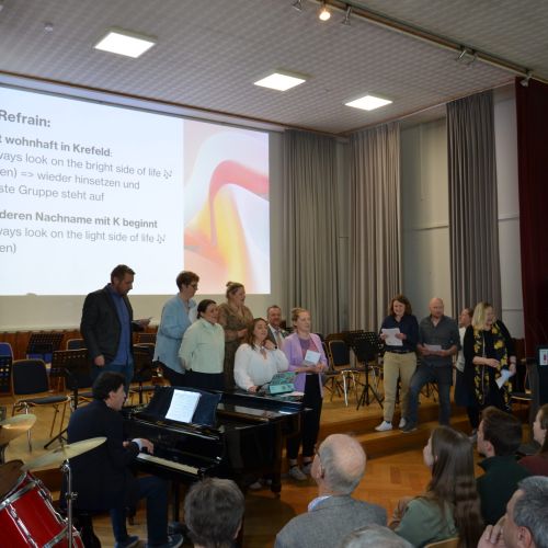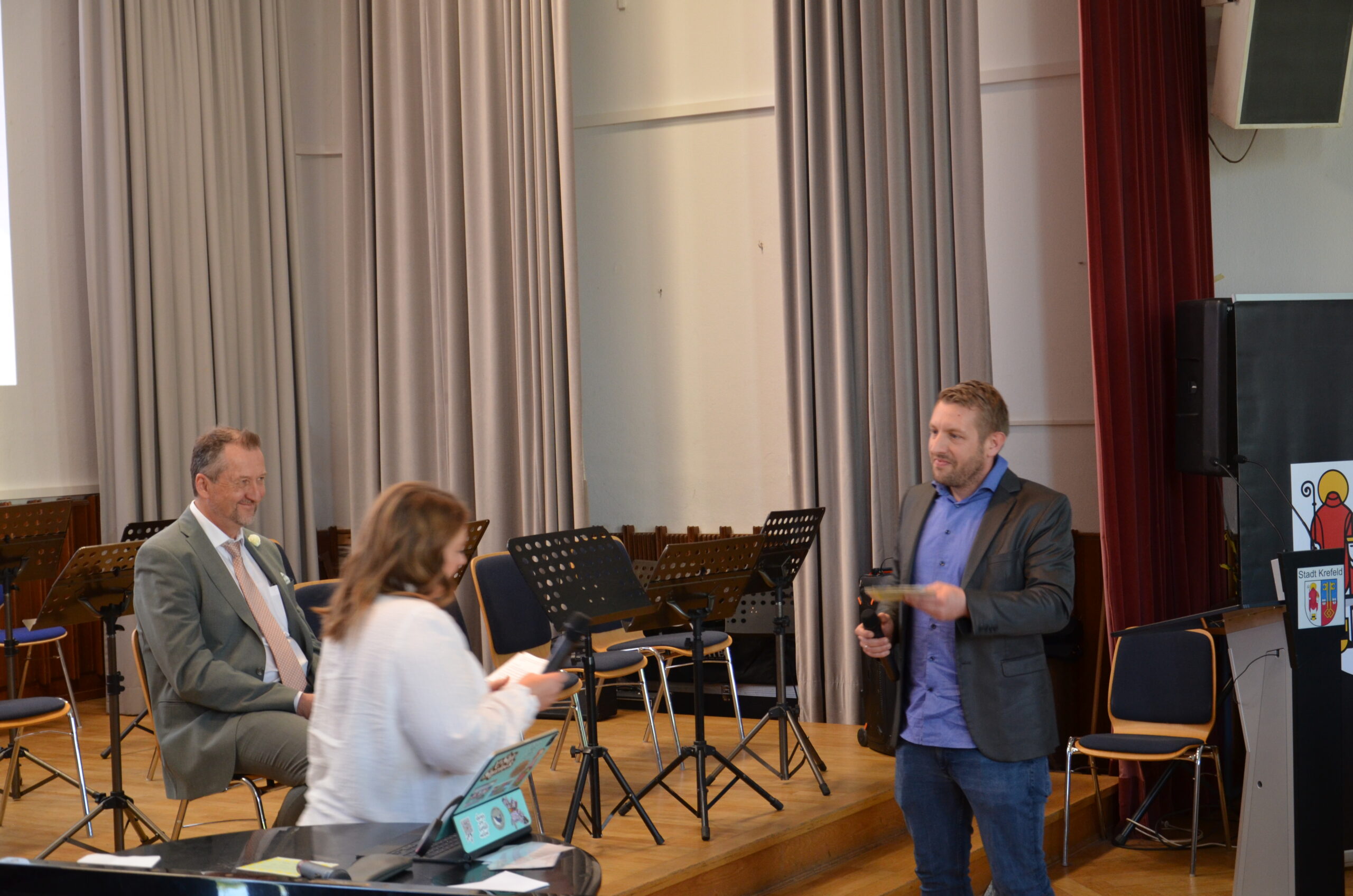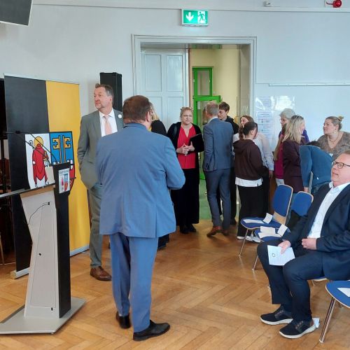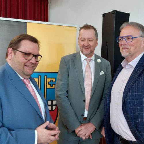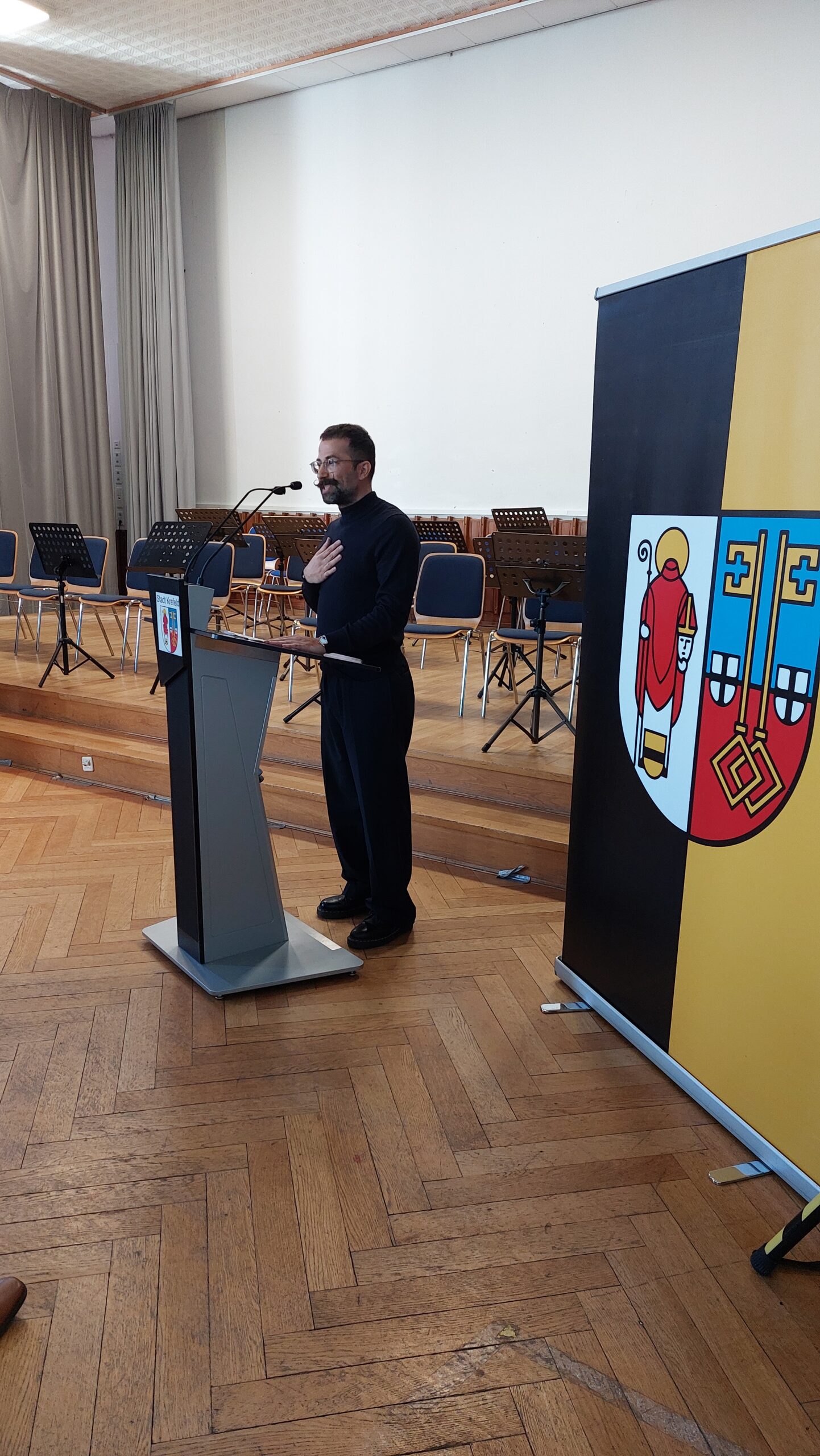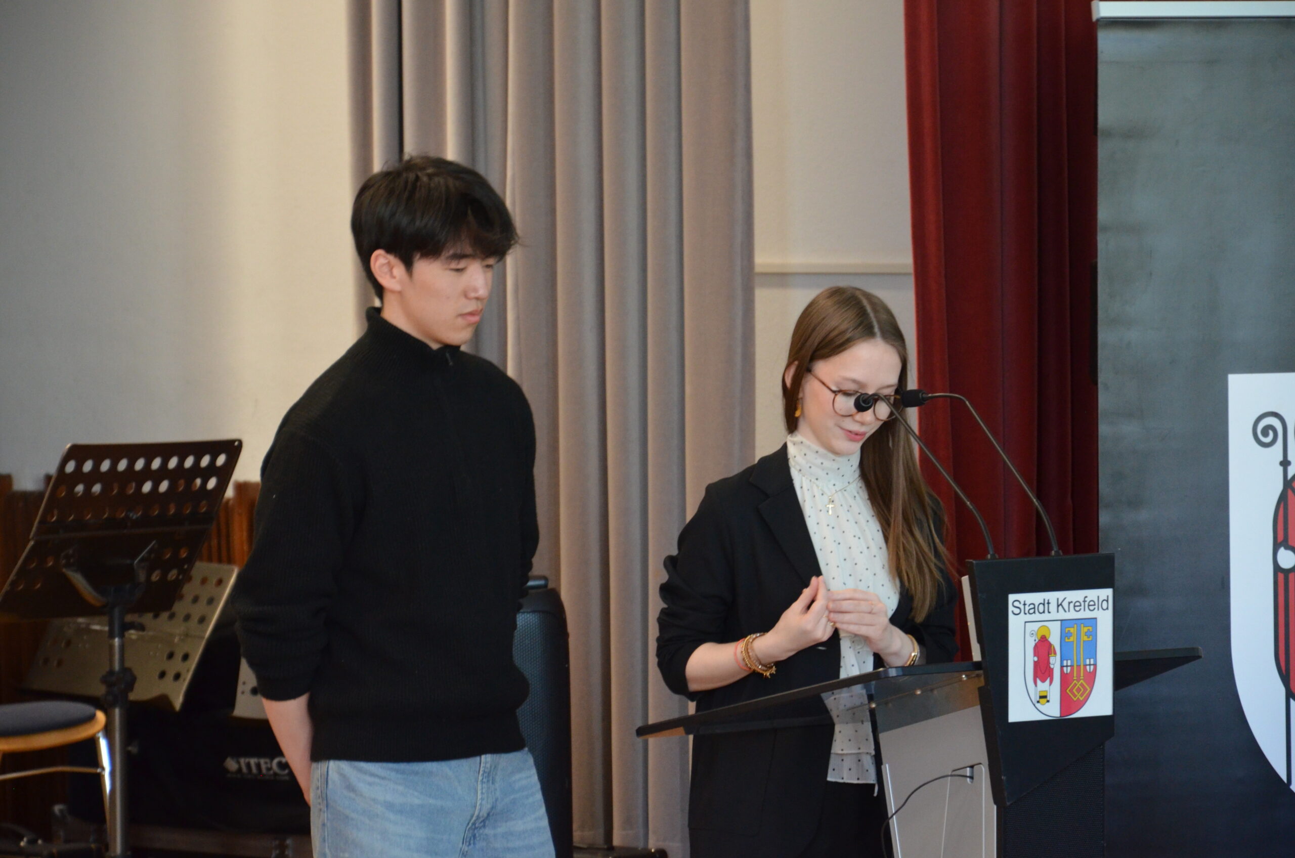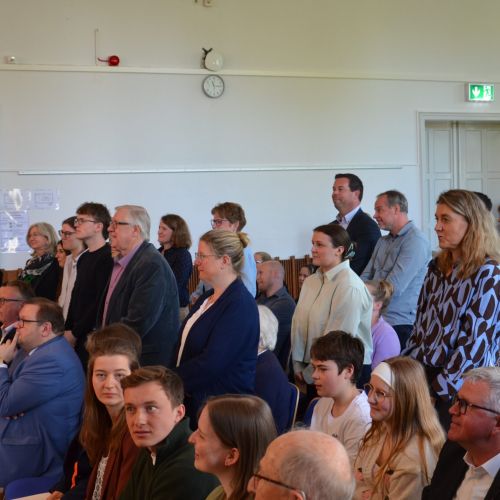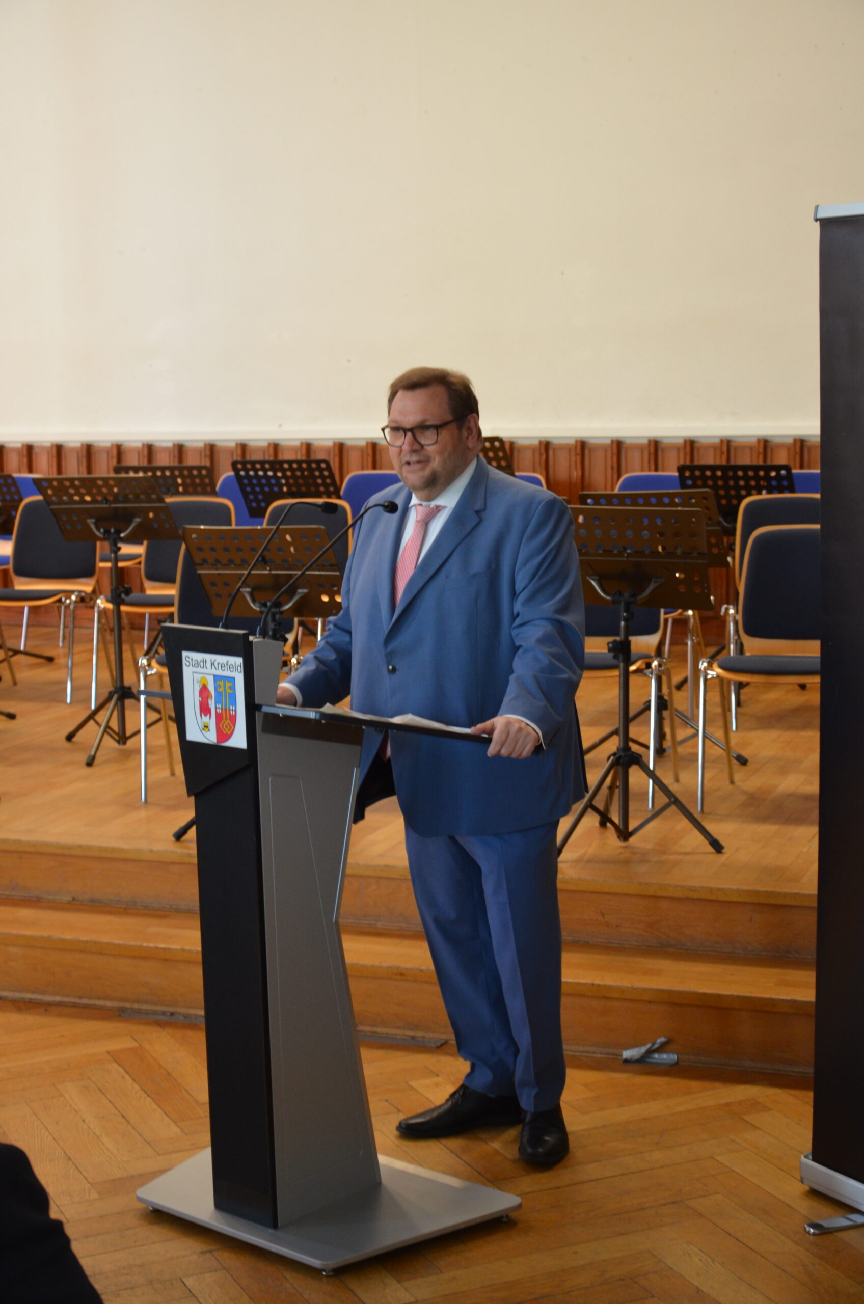 Oberbürgermeister Frank Meyer, Schuldezernent Stefan Holtschneider, Landtagsabgeordneter Marc Blondin, um nur einige zu nennen: Viel Prominenz war zur offiziellen und feierlichen Amtseinführung von Stefan Kleeberg vertreten. Zusammen mit der Familie des neuen Schulleiters, den Kolleginnen und Kollegen, Vertreterinnen und Vertretern aus der Schülerschaft, der Elternschaft und vielen weiteren Weggefährtinnen und -gefährten wurde dieses Ereignis in der prall gefüllten Aula gebührend begangen und gefeiert. Das nicht nur in verschiedenen Reden, wie z.B. durch den Oberbürgermeister und ehemaligen Schüler des Gymnasiums in Personalunion, sondern auch mit musikalischen Beiträgen oder einem heiteren Abschluss-Quiz, das Stefan Kleeberg mit Bravour bestand.
