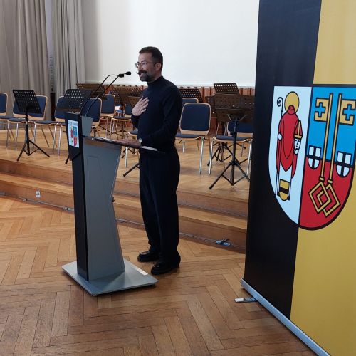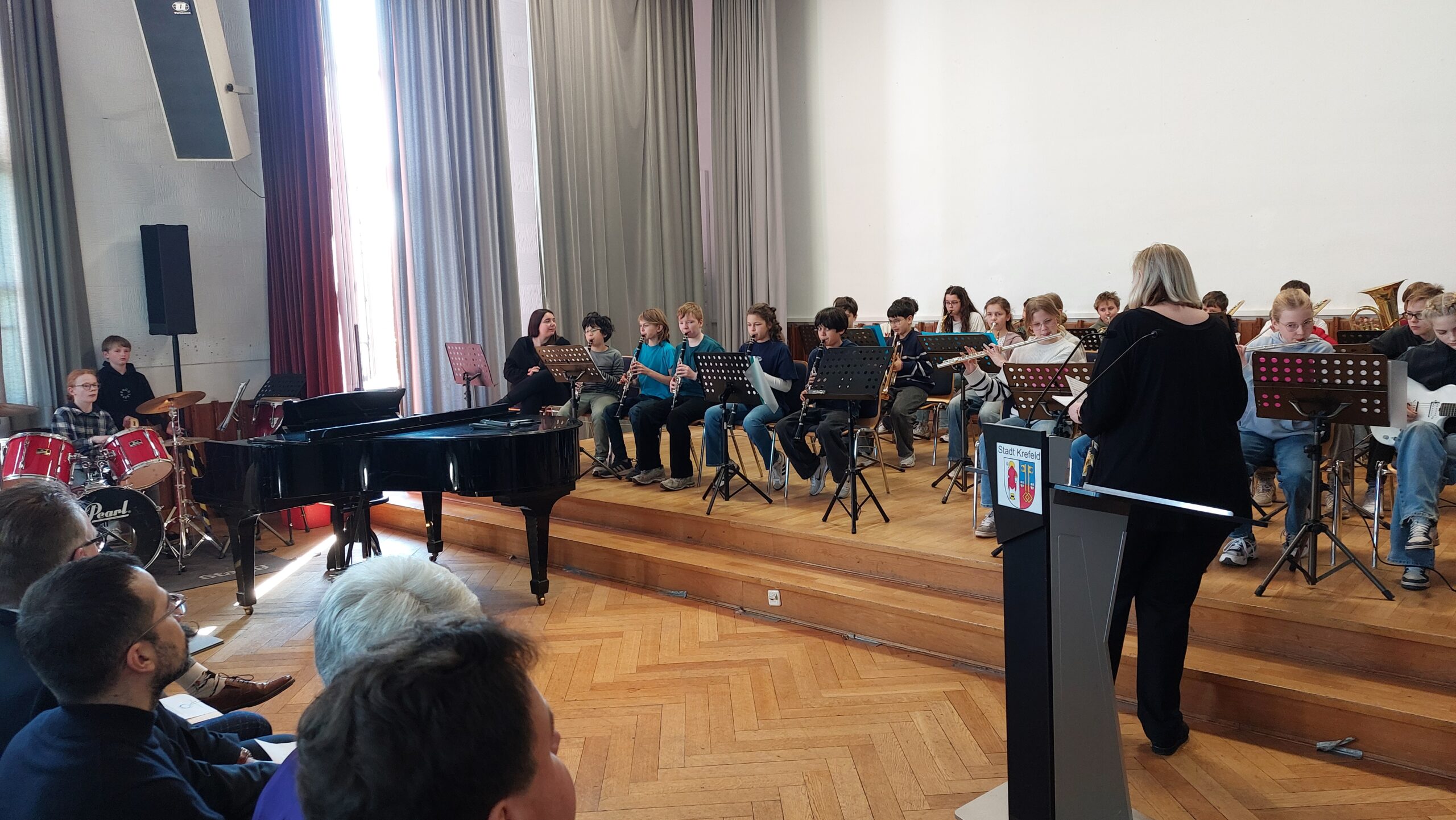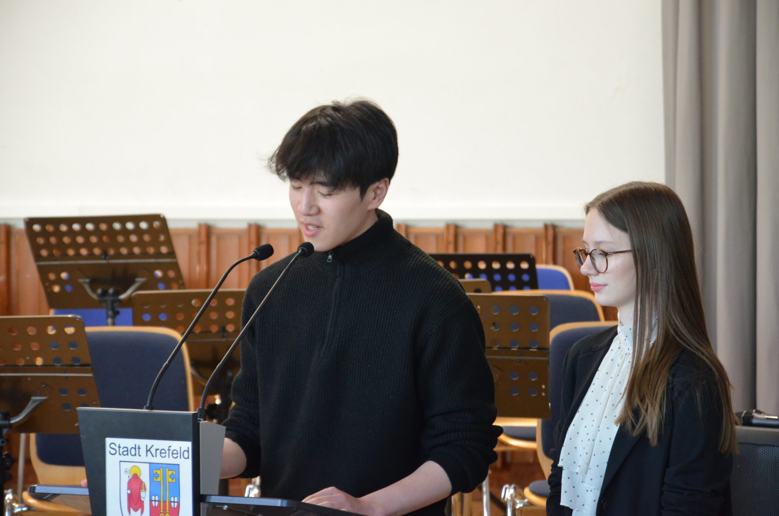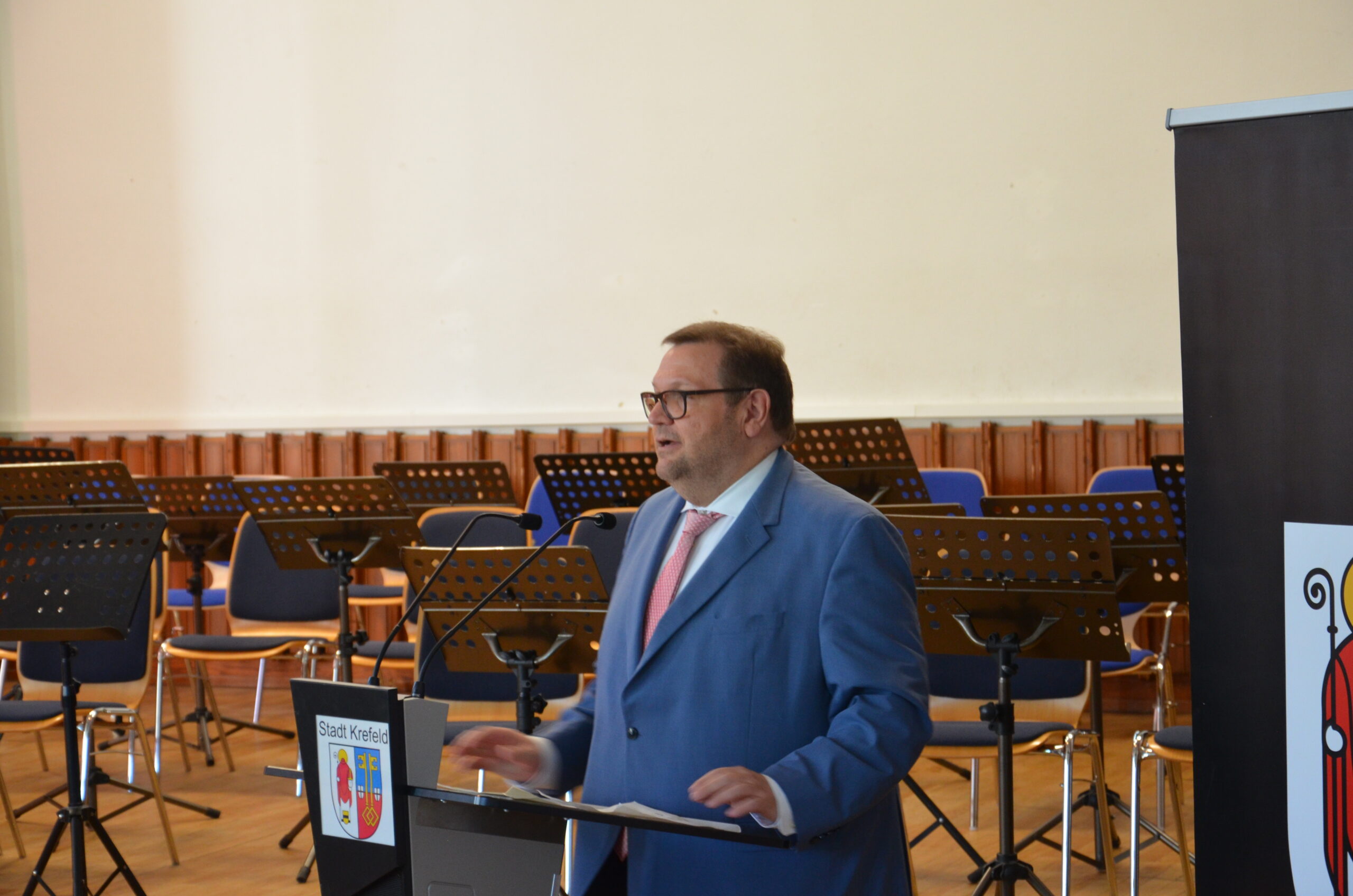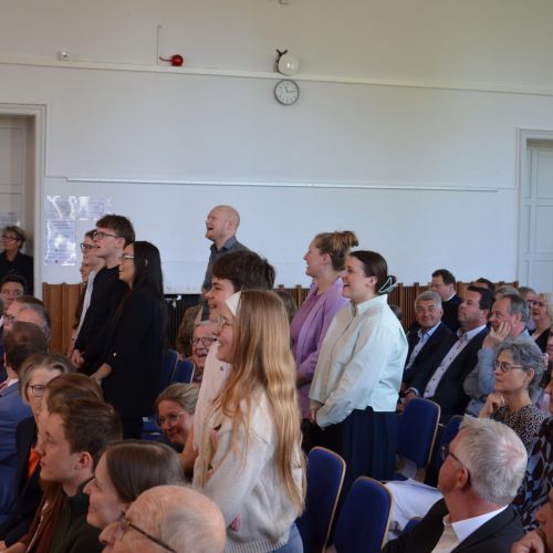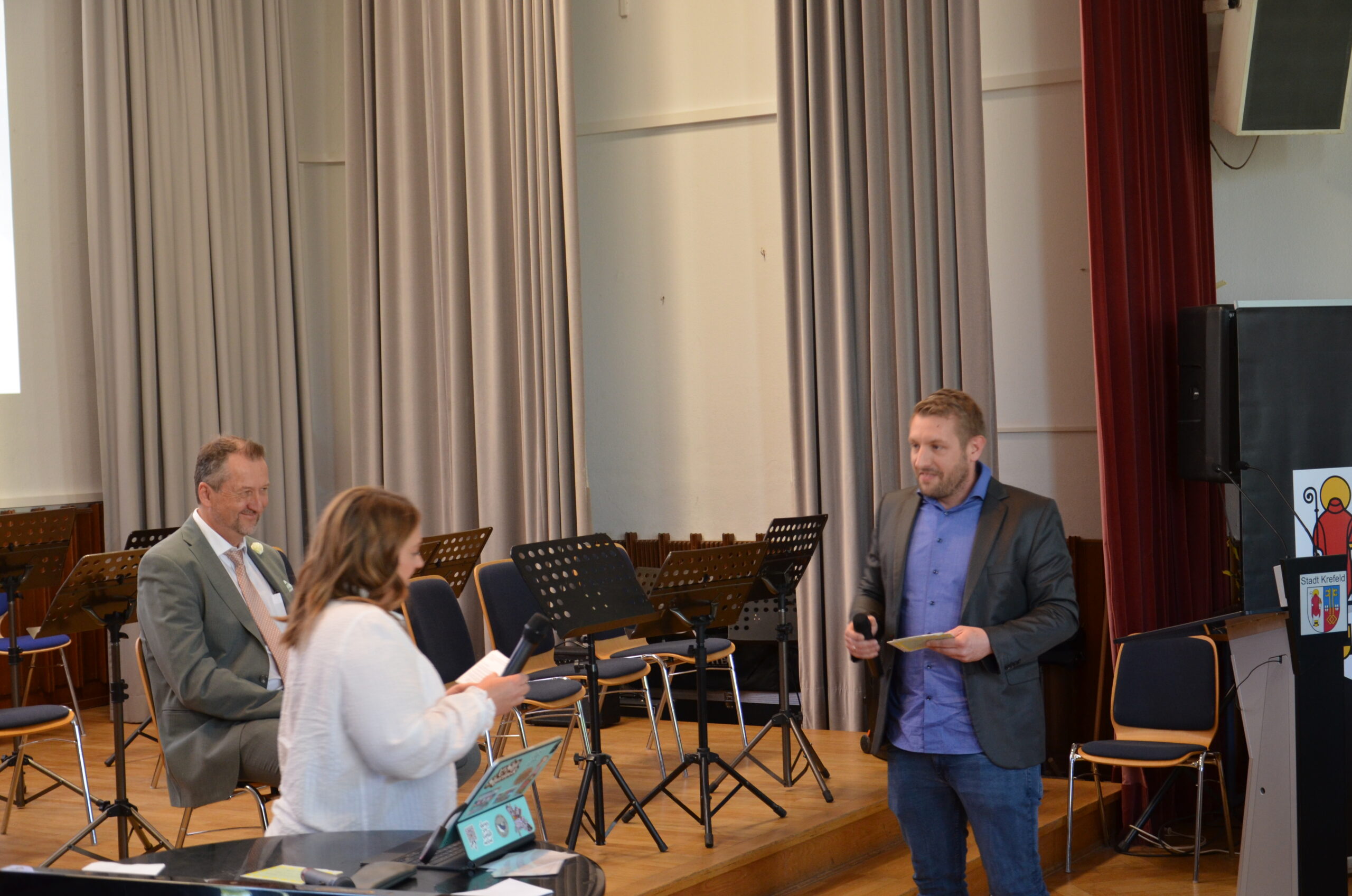 Oberbürgermeister Frank Meyer, Schuldezernent Stefan Holtschneider, Landtagsabgeordneter Marc Blondin, um nur einige zu nennen: Viel Prominenz war zur offiziellen und feierlichen Amtseinführung von Stefan Kleeberg vertreten. Zusammen mit der Familie des neuen Schulleiters, den Kolleginnen und Kollegen, Vertreterinnen und Vertretern aus der Schülerschaft, der Elternschaft und vielen weiteren Weggefährtinnen und -gefährten wurde dieses Ereignis in der prall gefüllten Aula gebührend begangen und gefeiert. Das nicht nur in verschiedenen Reden, wie z.B. durch den Oberbürgermeister und ehemaligen Schüler des Gymnasiums in Personalunion, sondern auch mit musikalischen Beiträgen oder einem heiteren Abschluss-Quiz, das Stefan Kleeberg mit Bravour bestand.