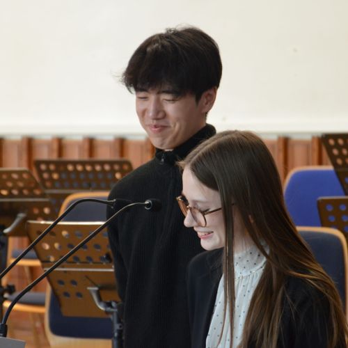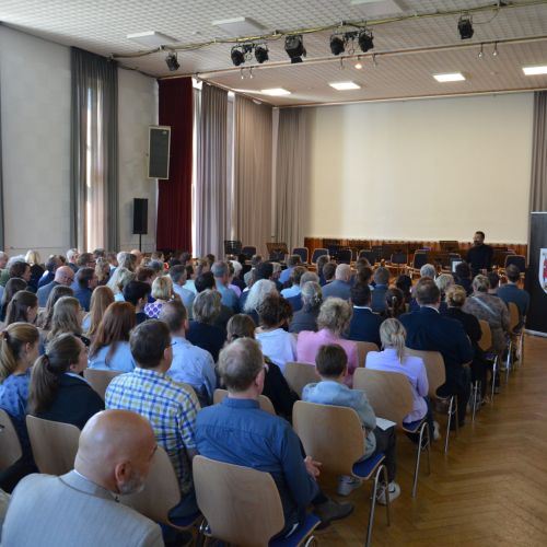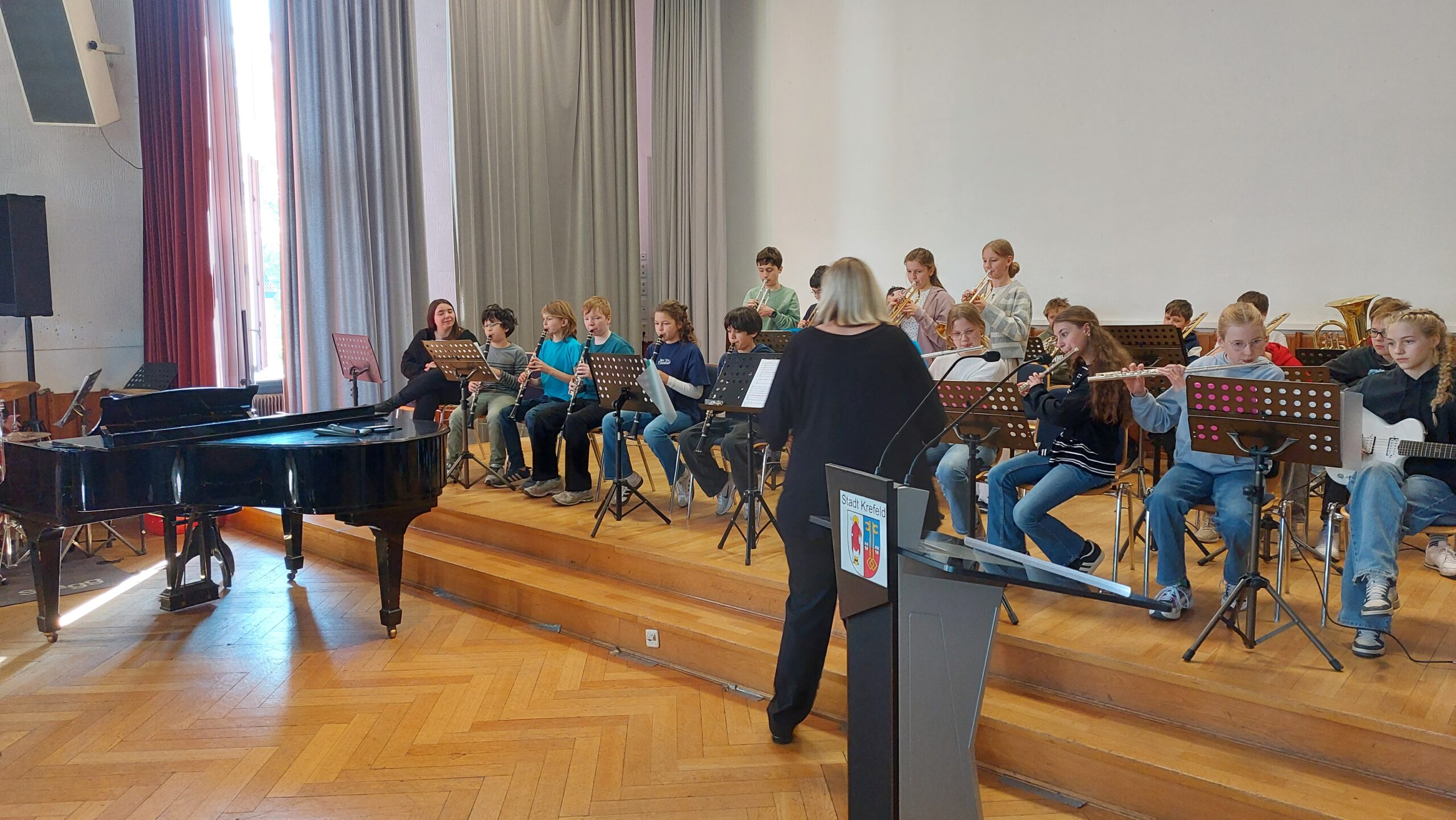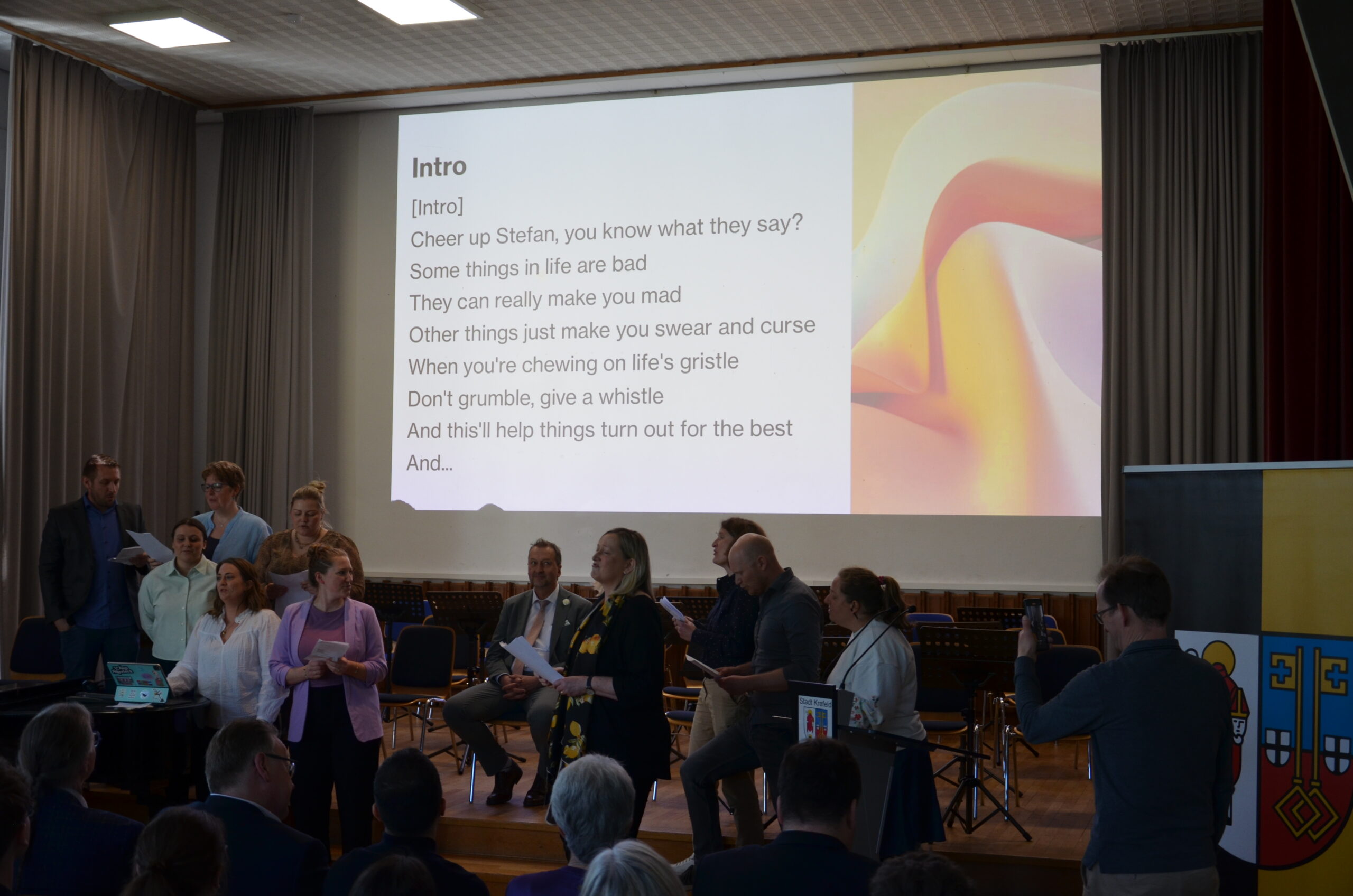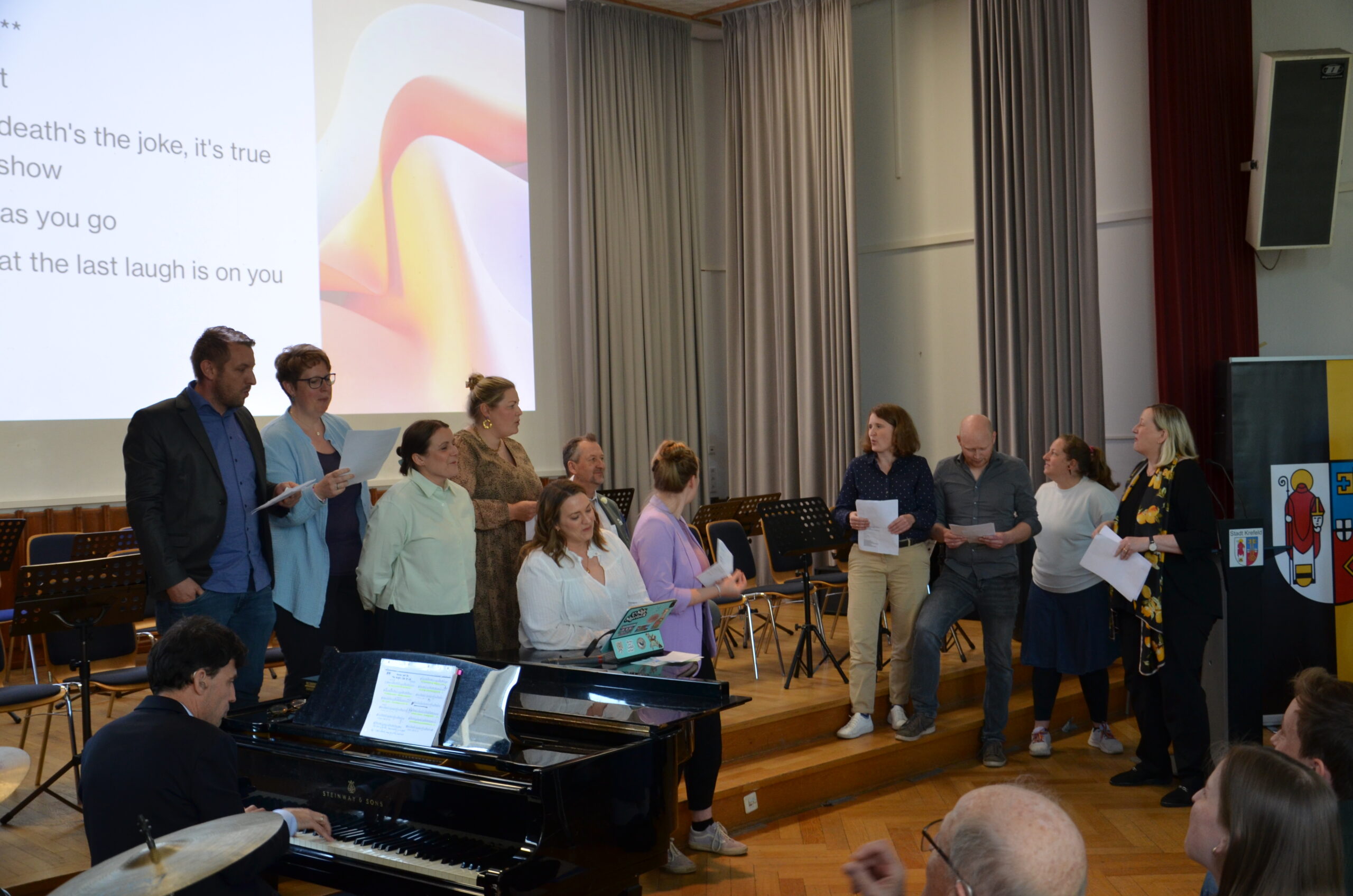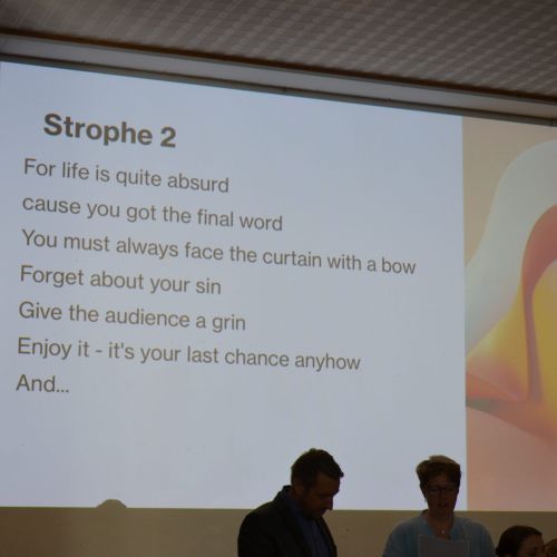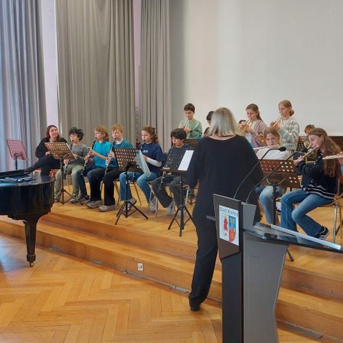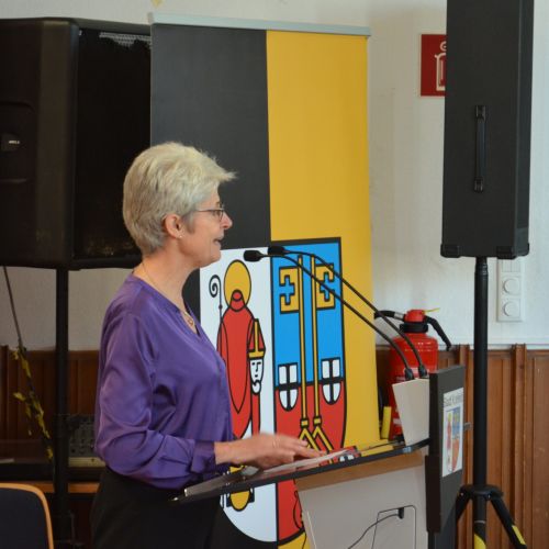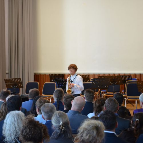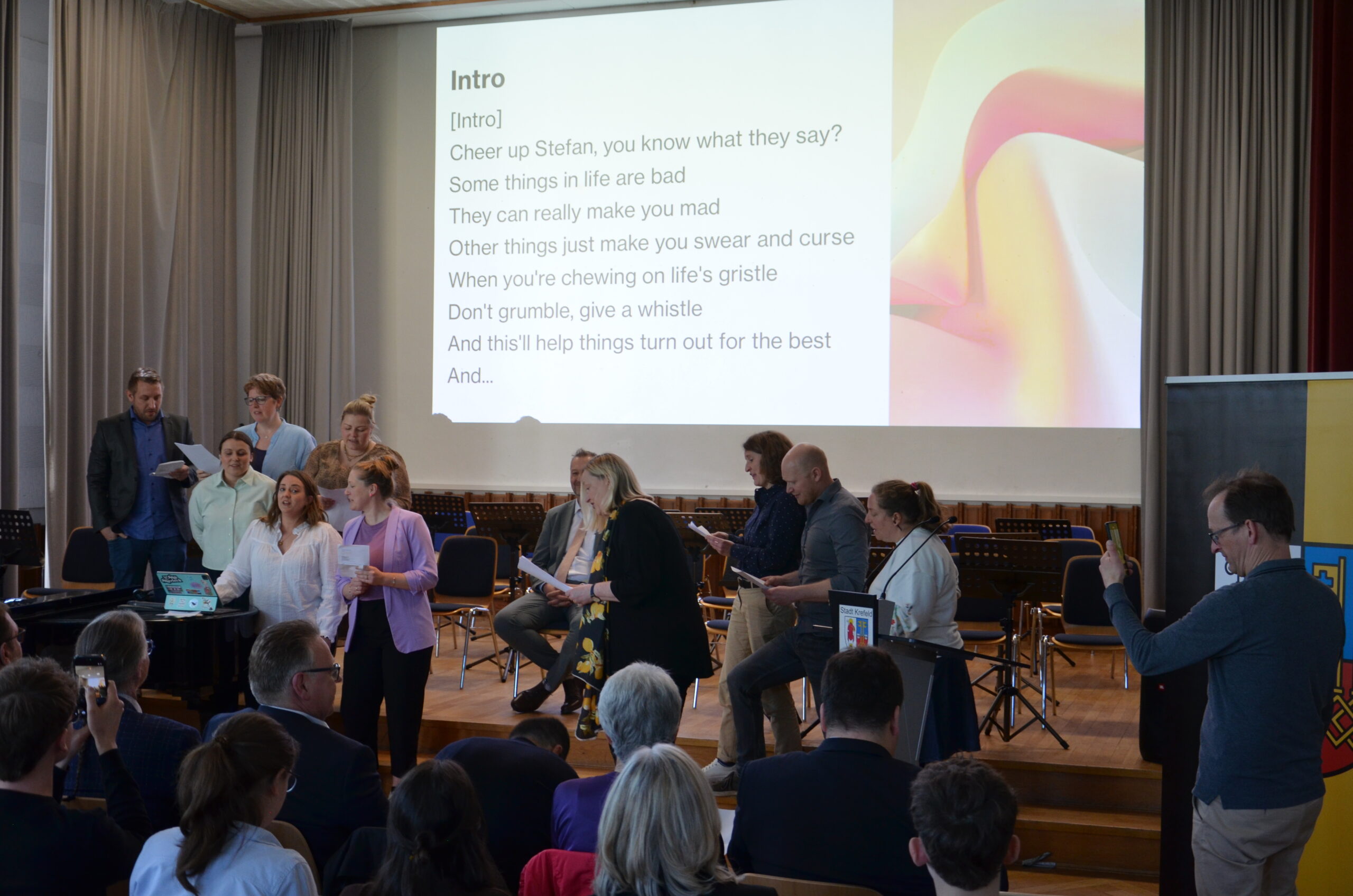 Oberbürgermeister Frank Meyer, Schuldezernent Stefan Holtschneider, Landtagsabgeordneter Marc Blondin, um nur einige zu nennen: Viel Prominenz war zur offiziellen und feierlichen Amtseinführung von Stefan Kleeberg vertreten. Zusammen mit der Familie des neuen Schulleiters, den Kolleginnen und Kollegen, Vertreterinnen und Vertretern aus der Schülerschaft, der Elternschaft und vielen weiteren Weggefährtinnen und -gefährten wurde dieses Ereignis in der prall gefüllten Aula gebührend begangen und gefeiert. Das nicht nur in verschiedenen Reden, wie z.B. durch den Oberbürgermeister und ehemaligen Schüler des Gymnasiums in Personalunion, sondern auch mit musikalischen Beiträgen oder einem heiteren Abschluss-Quiz, das Stefan Kleeberg mit Bravour bestand.