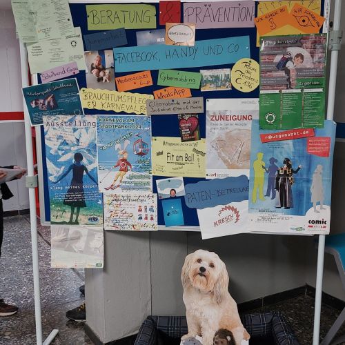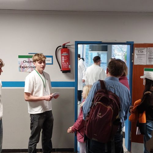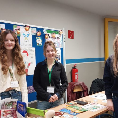 Auch sonst konnte die Vielfalt der Schule erlebt werden: Schulsanitätsdienst, Medienscouts und Fair-Trade-AG stellten sich vor, nur als Beispiele. Die Fachschaften luden zum näheren Kennenlernen ein: Die Sprachen, auch mit dem Baustein Wirtschaftsenglisch, das Fach Kunst, das den jährlich Kalender mit Werken der Schülerinnen und Schüler herausgibt oder auch Mathematik mit dem Mathe-Labor. Und nicht zuletzt zeigten einige Schülerinnen und Schüler im Rahmen des Programms „Jugend präsentiert“ ihre Talente bzw. ihr Können.