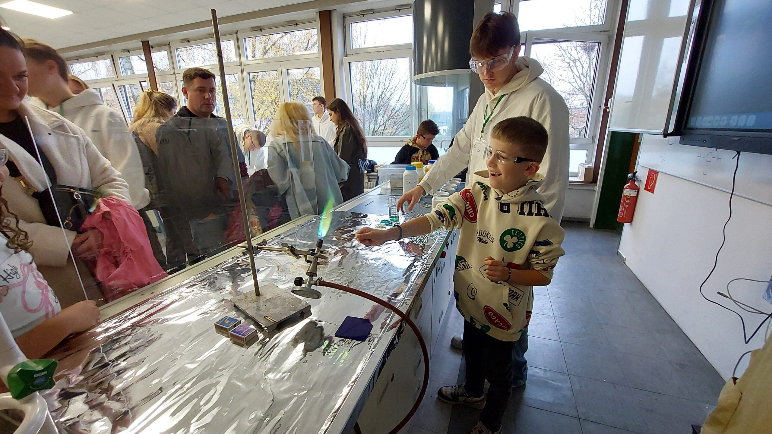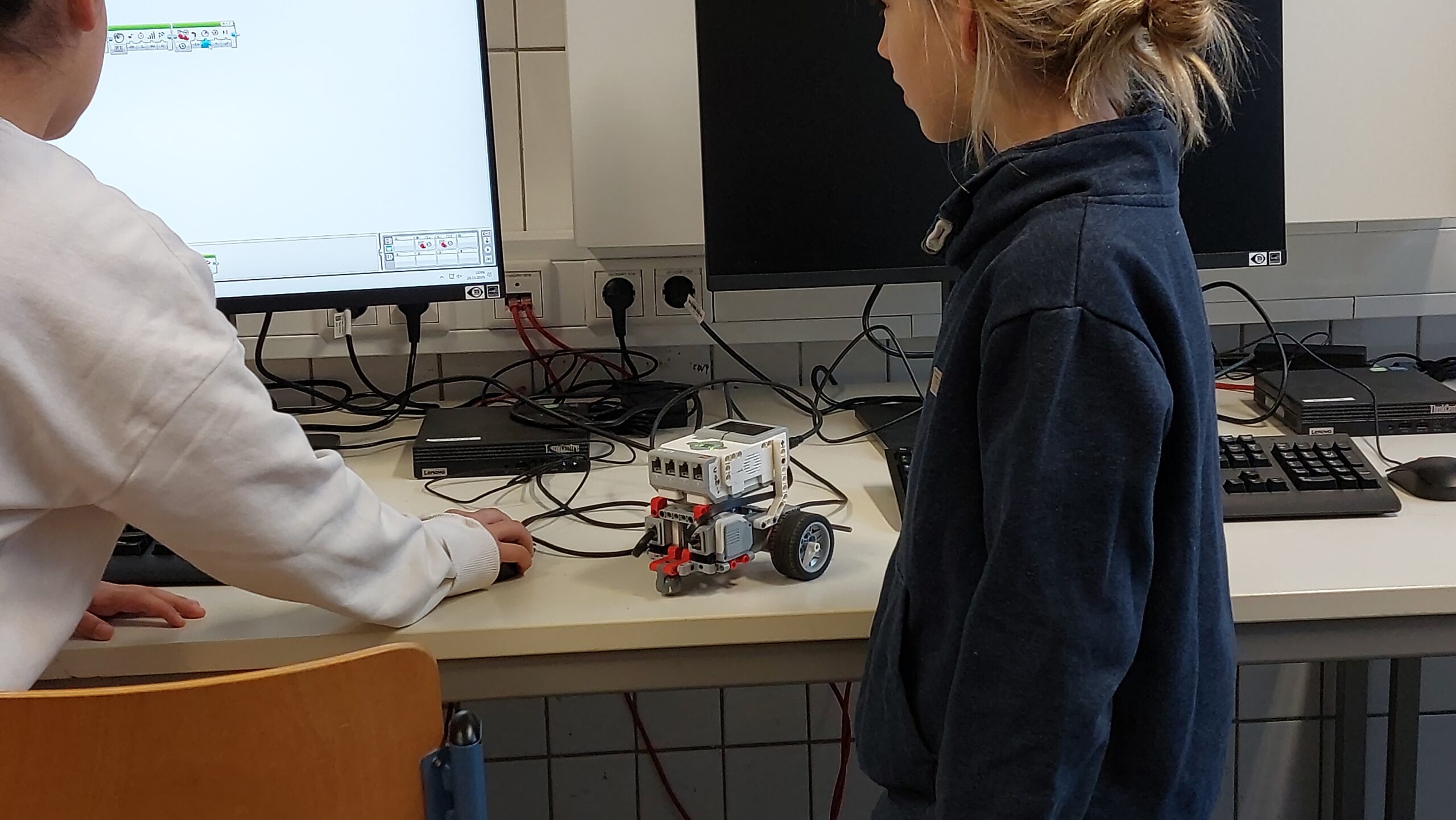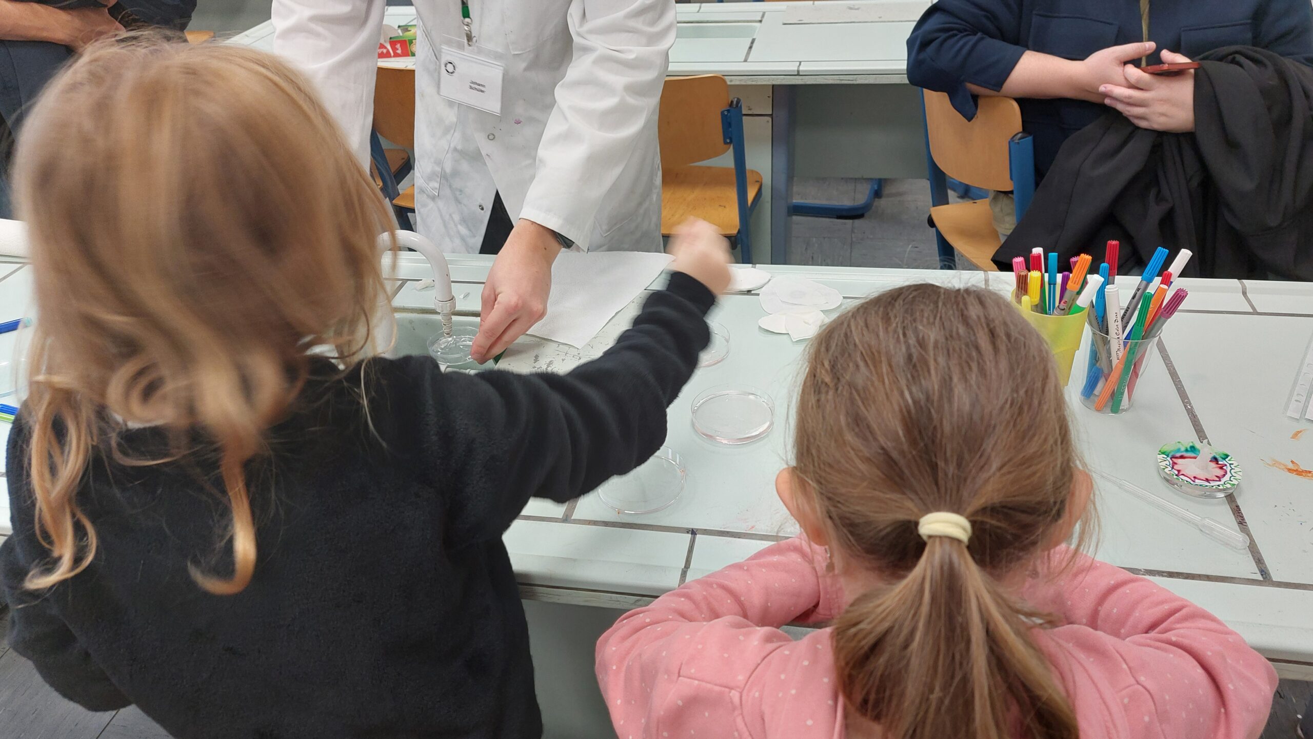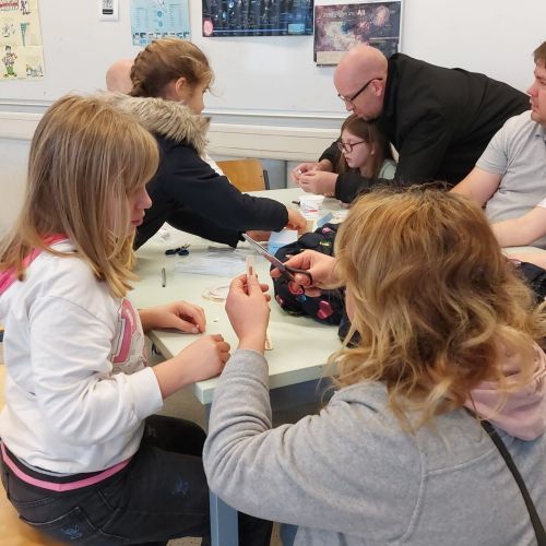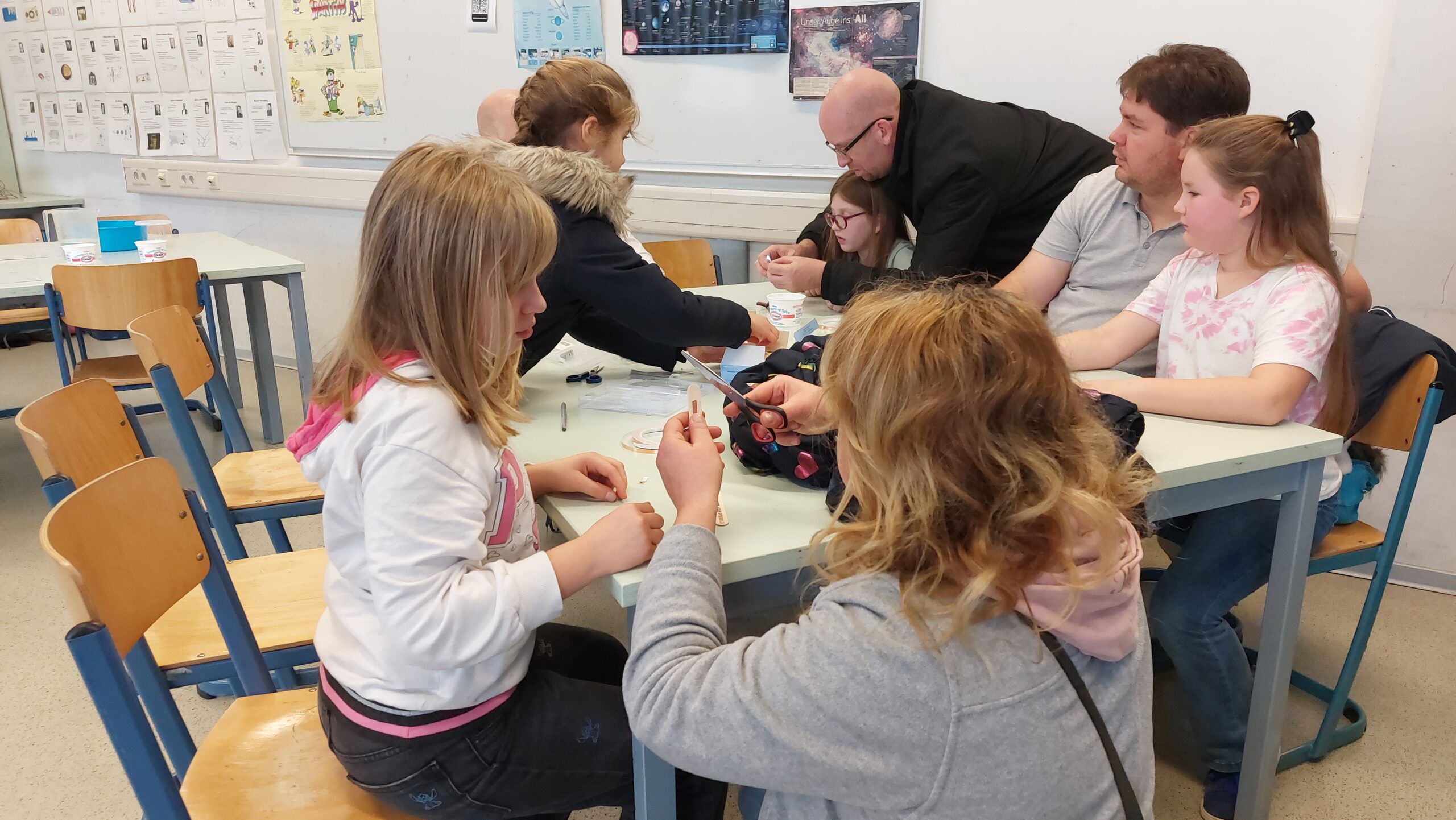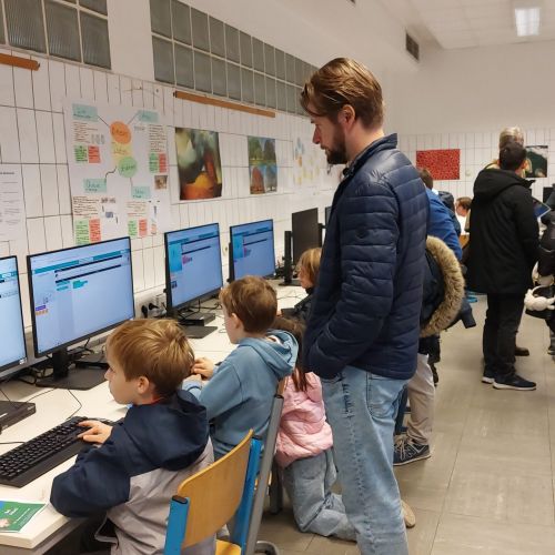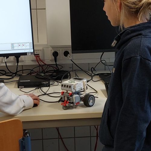 So konnten die 4-Klässler im Probeunterricht nicht nur Fächer wie Deutsch und Bio kennenlernen, sondern auch die Bläserklasse, eine Besonderheit an unserer Schule. Ob Mitmachstationen mit Lego-Robotern oder in der Medienwerkstatt, Experimente in Chemie und Physik oder etwa die Teilnahme am Intrumentenkarussell – um nur einige zu nennen – es gab so einiges zu entdecken.