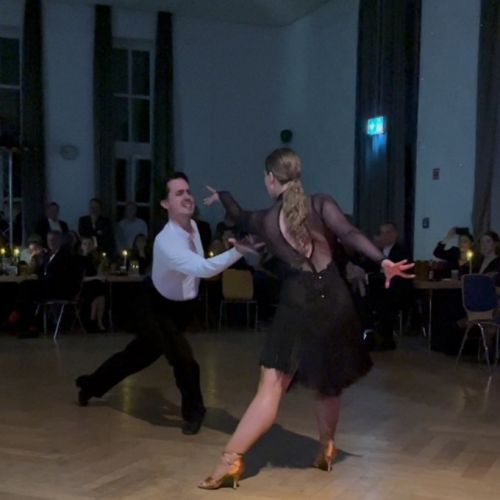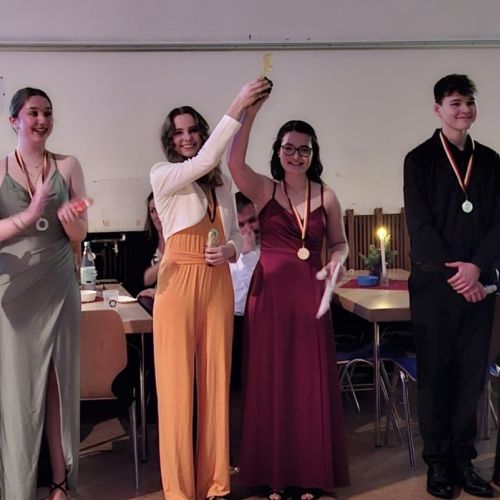 An diesem besonderen Abend gab es einen Elterntanz, bei dem die Tanzschüler*innen mit ihren Eltern (Jungen mit ihren Müttern und Mädchen mit ihren Vätern) Langsamen Walzer tanzten, in mehreren Tanzrunden zeigten die Tanzpaare ihr Können, aber auch Lars Pastor mit seiner Frau und einige Solotänzerinnen vom TC Seidenstadt sorgten für einen Hauch von „Let’s Dance“ in verschiedenen Showtänzen. Das ist eine besondere Ehre, da sie schon Deutsche Meister waren und an vielen Meisterschaften mitgewirkt haben. An einem kleinen Tanzturnier für unsere Tanzkursteilnehmer*innen im Rahmen des Tanzballs nahmen 15 Paare teil. Vor den Augen der aufmerksamen Jury (Lars Pastor und seine Frau, sowie Herr Kleeberg) tanzten sie drei Tänze und wurden dabei bewertet. Den ersten Platz belegten Louisa Gondert und Janne Augstein. Herzlichen Glückwunsch!