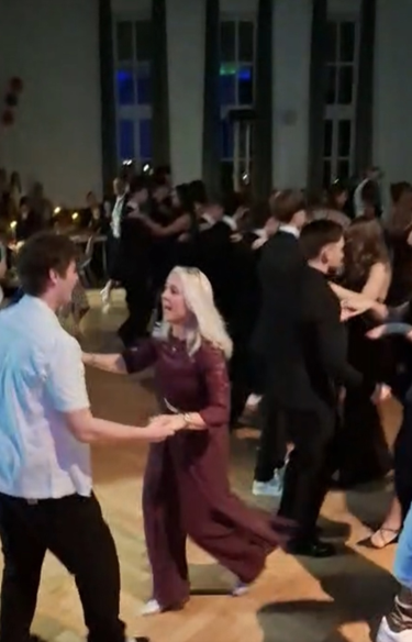 Es ist schön zu sehen, wie viel Freude unsere Schüler*innen beim Tanzen zeigen und wie sie sich voll und ganz auf dieses Experiment eingelassen haben. Der Tanzball war für alle ein wunderschöner Abend. Danke an Herrn Metzmacher für die leckeren Teilchenspende und, an die Q1 für den Ausschank von Getränken. Der größte Dank geht an dieser Stelle an Lars Pastor, der auch moderierend durch den Ball führte!