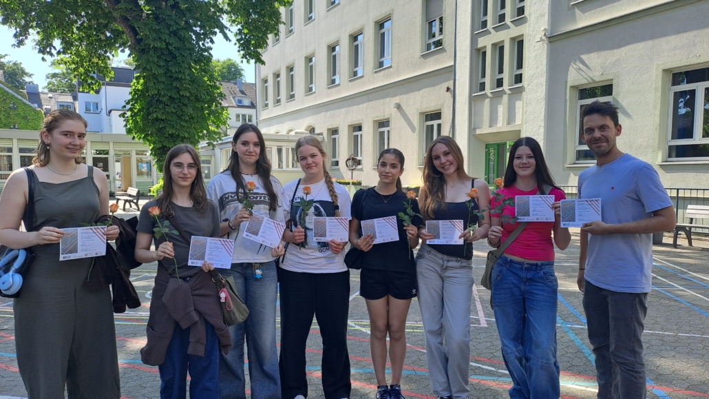 Unsere Schule war mit 14 Schüler:innen (Johanna Bludau, Laure Bogut, Tamara Goeres, Aurora Grothe, Elias Heuser, Janne Hillerkus, Ljiljana Höddinghaus, Hannah Kox, Milla Mbondjo, Kilian Reckeweg, Anja Ruppelt, Lara Saric, Emma Strater) vertreten, die jeweils eigene kreative Beiträge eingereicht haben. Auch wenn keiner der Beiträge prämiert wurde, war die Teilnahme für alle Beteiligten eine bereichernde und motivierende Erfahrung. Die intensive Auseinandersetzung mit gesellschaftlich relevanten Themen, die kreative Umsetzung der eigenen Ideen und nicht zuletzt die Ausstellung der Arbeiten im Rahmen der Preisverleihung waren für viele ein besonderer Moment.
